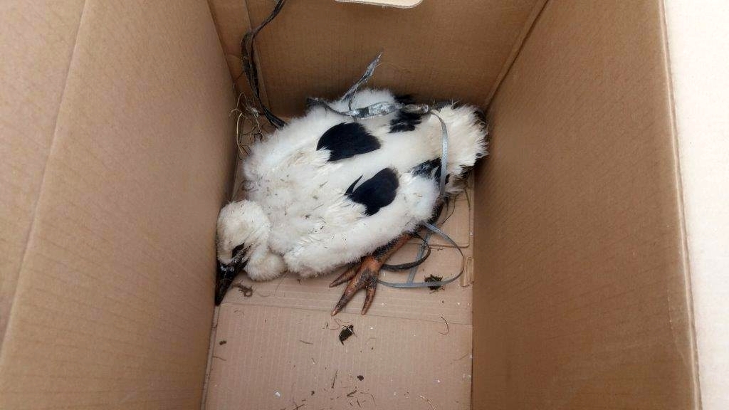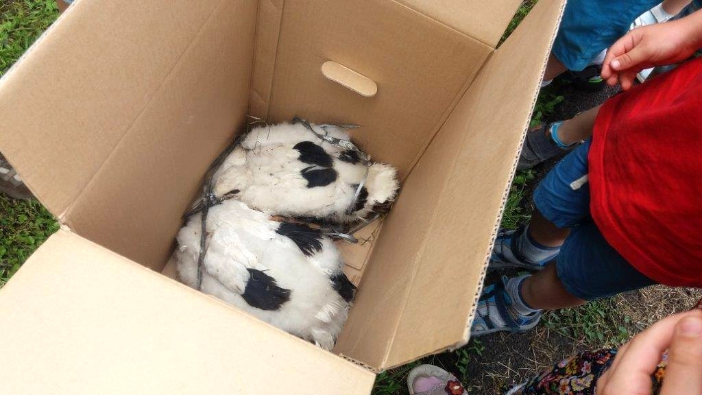 Az idő múltával az egészséges állat - szülei nagy örömére - visszakerült a fészekbe, míg a beteg jószág bekerült a dobozba. Teljes volt az egyetértés abban, hogy a kisgólya fészekből való kiemelése és a lábainak megszabadítása nélkül valószínűleg hamar elpusztult volna. Büszkén elmondhatjuk: megmentettük az életét.