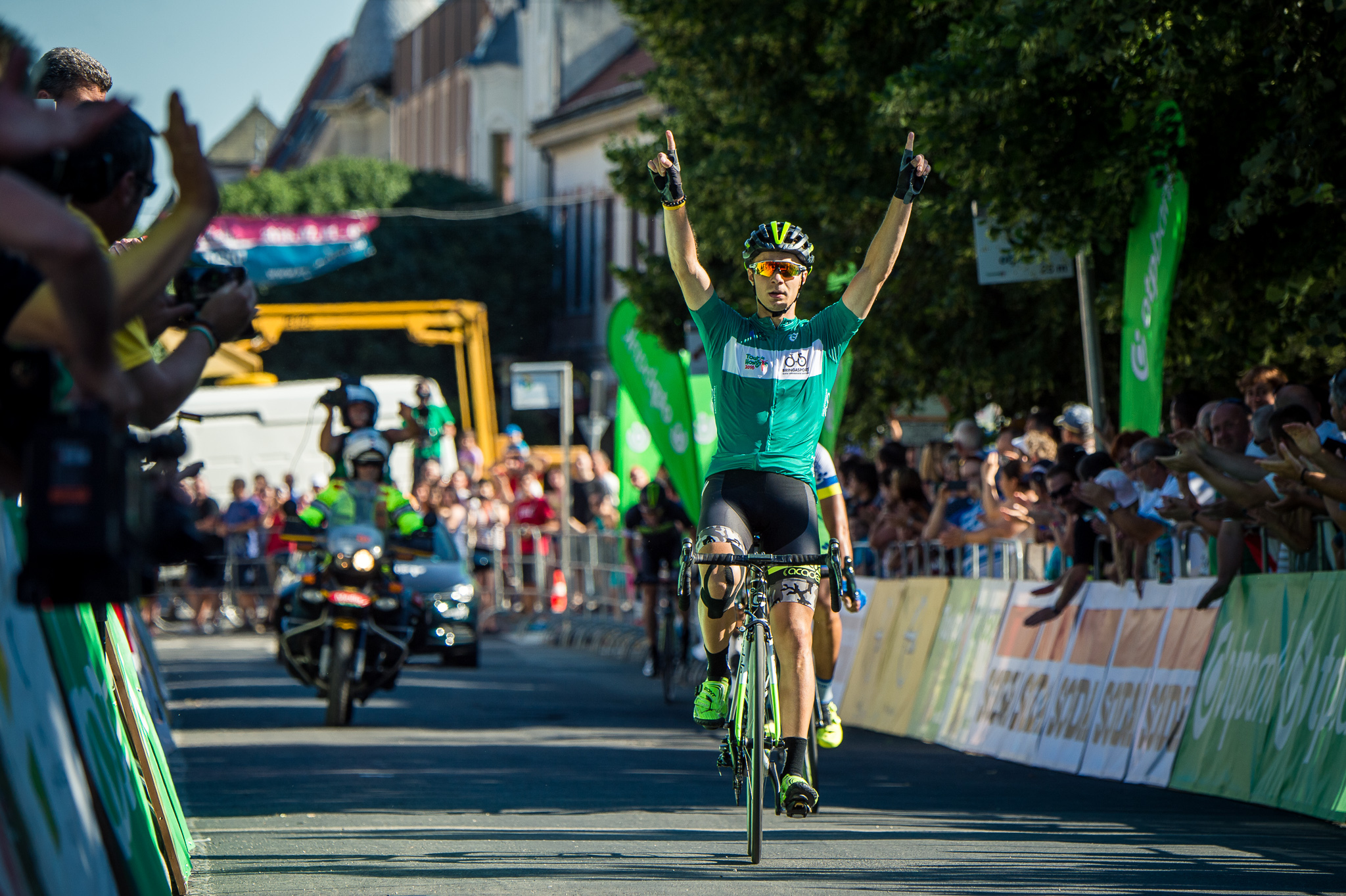 Gyorsasági pontverseny a Bringasport Nagydíjért: 1. (zöld mezben) Mihkel Raim (észt, Cycling Academy)
