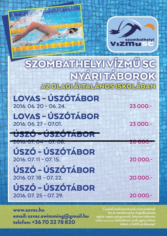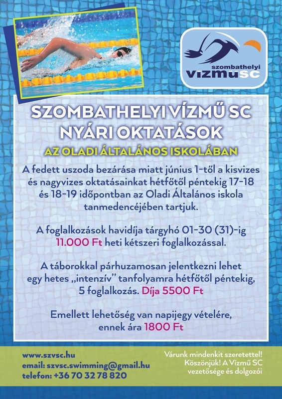 - 2016. június 1 - től az OLADI TANUSZODÁBAN hétfőtől - péntekig 16.30 - 18.30 óra között