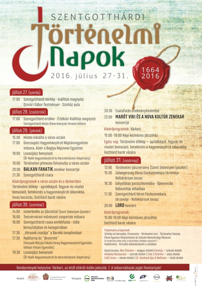 A Szentgotthárdi Történelmi Napok részletes programja (júl. 27-31.)