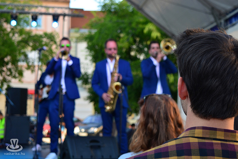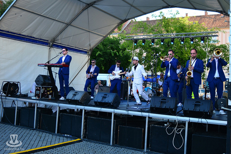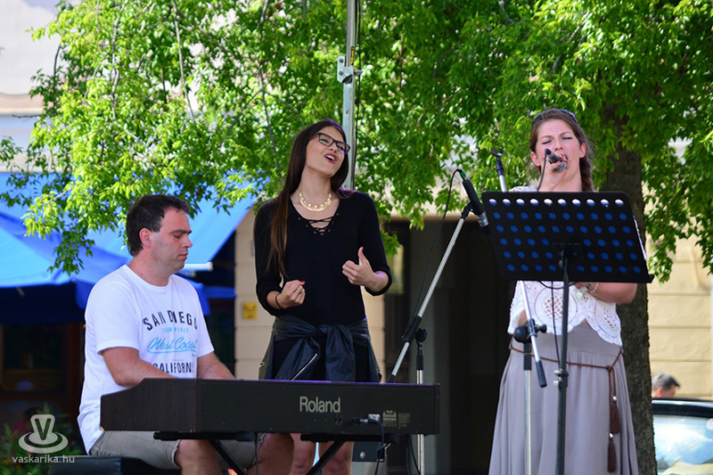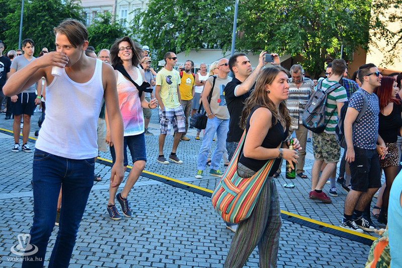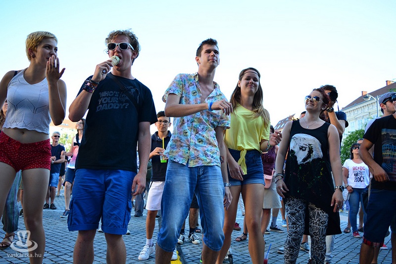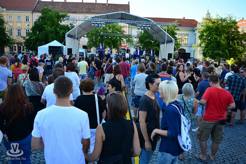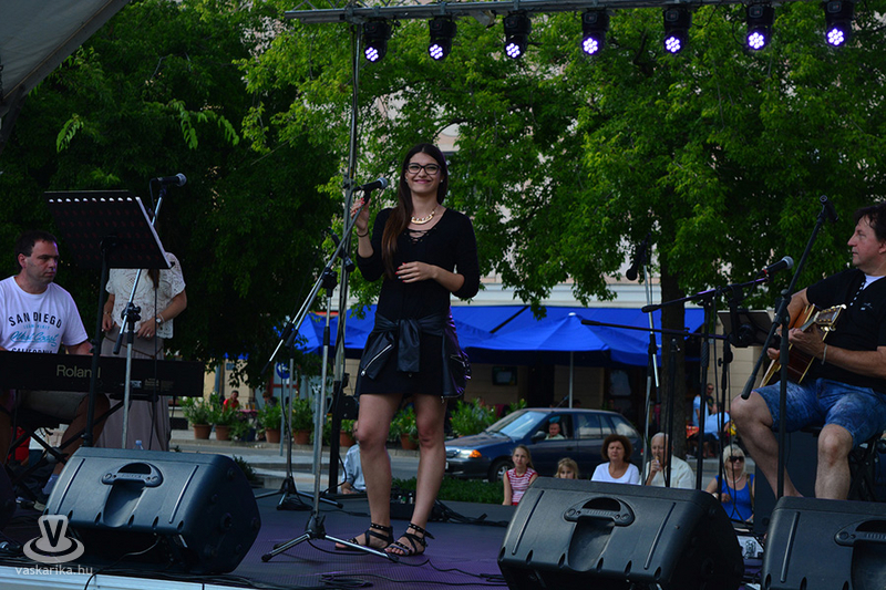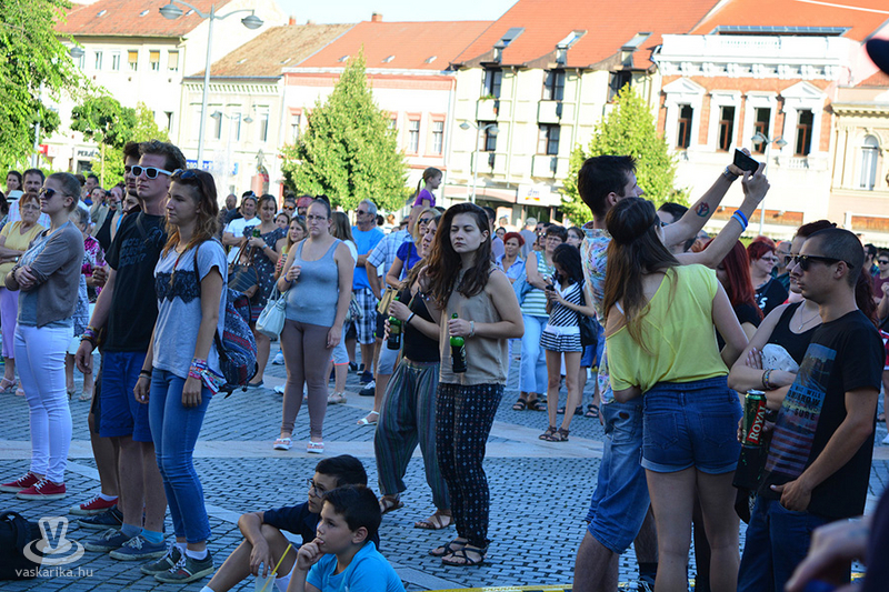 A napmelegtől égő térkő közönsége érthetően nem lájkolta a 16 órás koncertkezdést, így árnyékba menekülve hallgatta, ahogy Pál Kriszta és zenekara jobbnál jobb slágerekkel tölti meg a főteret.