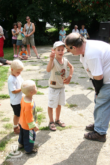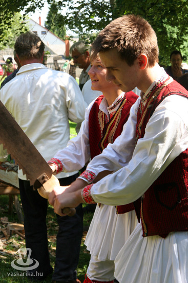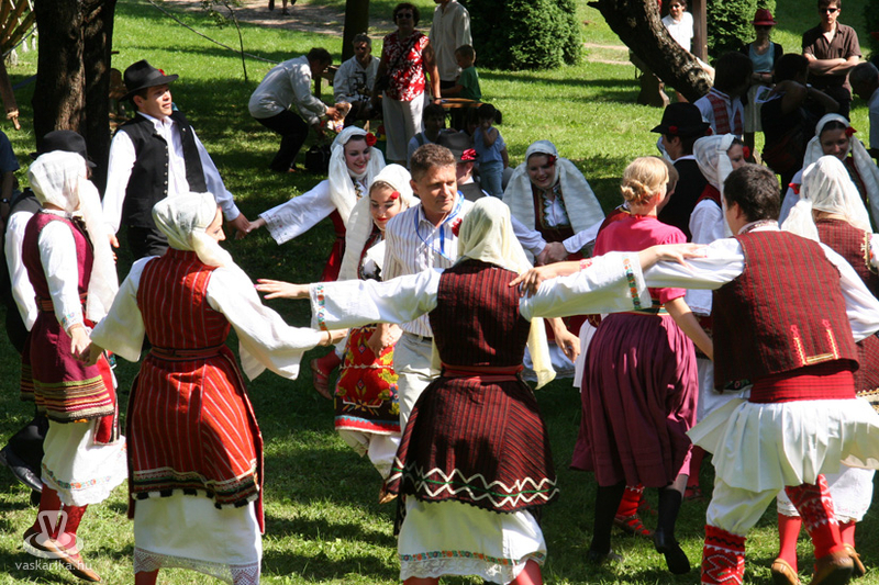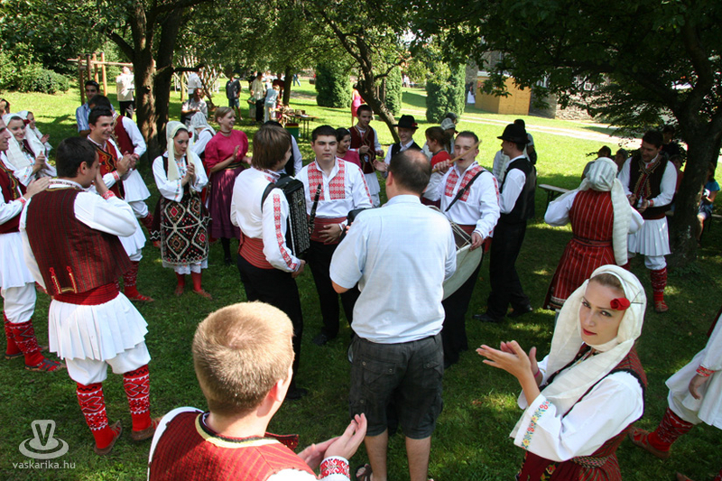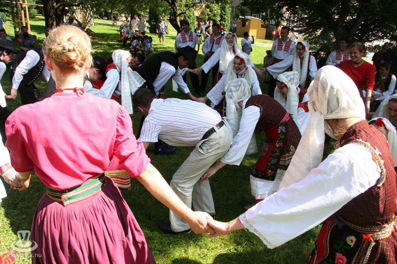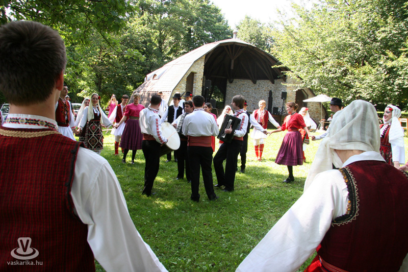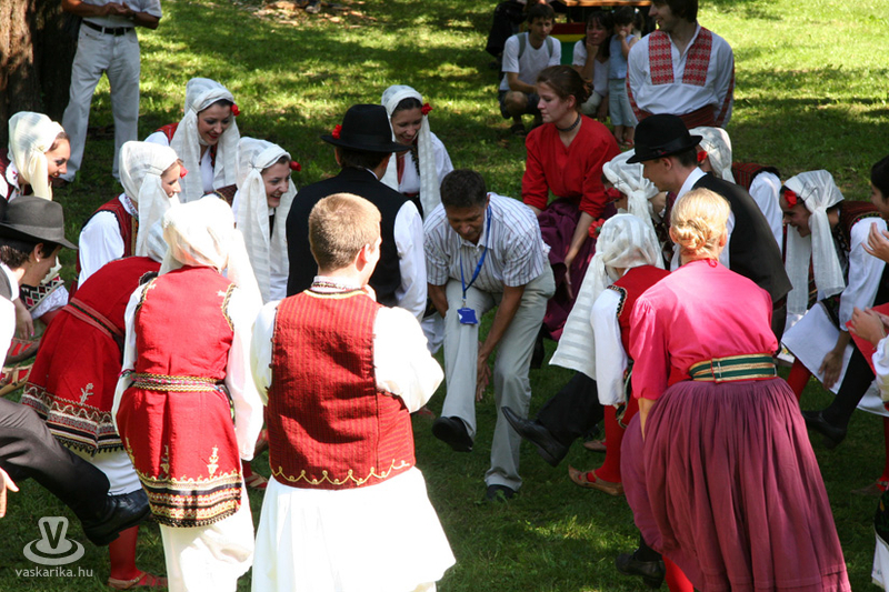 A bátrabbak gombaszedő túrája után a Sárvári Nemzetközi Folklórfesztivállal való együttműködés jegyében láthattuk-hallhattuk a Skopjéból érkezett makedón táncosokat, zenészeket, akik a Szombathelyi Néptáncműhely táncosaival kiváló bemutatót és remek hangulatú táncházat tartottak. A gyermekek és a vendégtáncosok egyik kedvence lett a Hagyárosböröndi Hagyományőrző Faművesek bemutatója. A kisebb gyermekek szórakoztatásáról Fredy Bácsi Bábszínháza gondoskodott, de a jól ismert és kedvelt velemi fajátékok sem maradtak üresen. A hőséget pár percre megszakító alig-zápor cseppnyi felüdülést hozott a vásározó, kézműves-bemutatót tartó népművészeknek és vendégeknek.