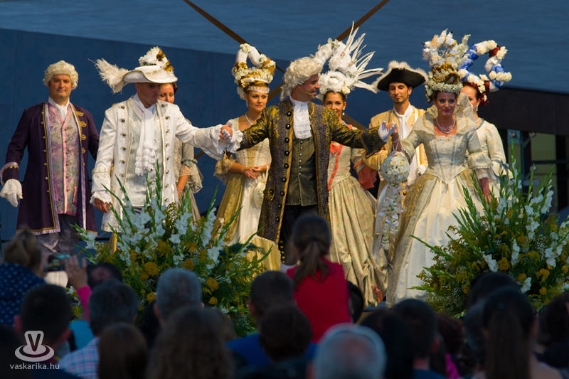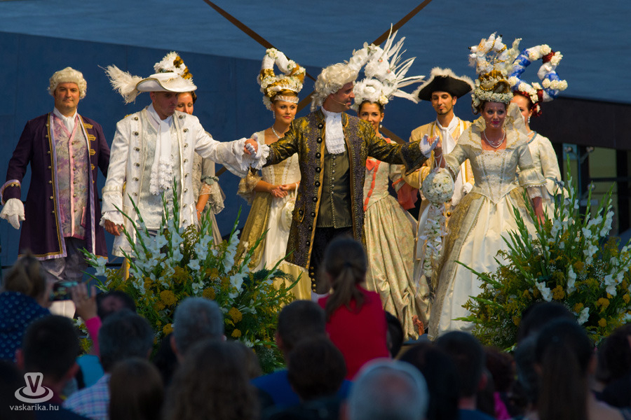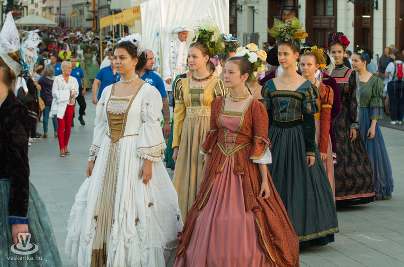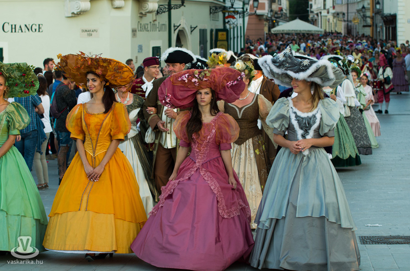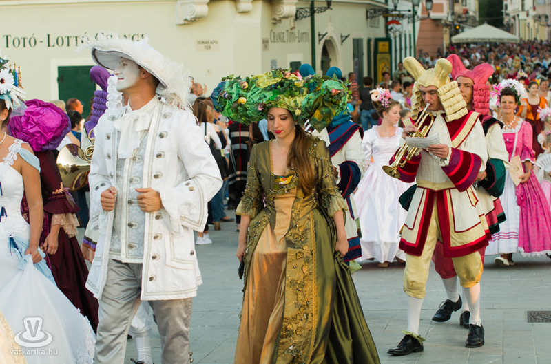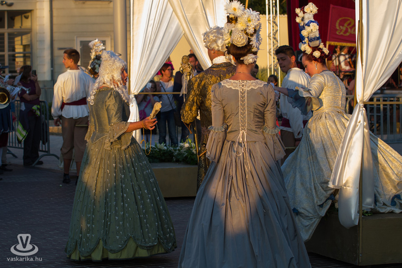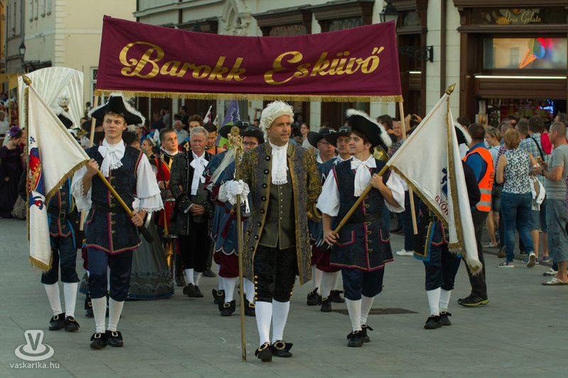 19 órakor induló Barokk felvonuláson mintegy kétszáz vidám jelmezes kísérte a menyasszonyt és vőlegényt életük nagy útjára, a házasságkötésükre. A menetet az Óriásnő, a termékenység szimbóluma vezette, őt követték aranykocsikon a megszemélyesített erények, az Igazságosság, a Mértékletesség, a Bölcsesség és az Erő, valamint Fortuna szerencseasszonya, mint jókívánságok. A zenészek, táncosok vidám kavalkádja egy valóságos divatbemutatót varázsolt a nézők elé, ahol a hagyományos barokk öltözetek mellett a parodizált jelmezeket viselő bolond zenészek, dámák tették még látványosabbá a menetet. 20.00 Barokk Esküvő - a ceremónia során kiderül, hogyan fogadott egymásnak örök hűséget egykor a XVII. században egy magyar főúri pár.