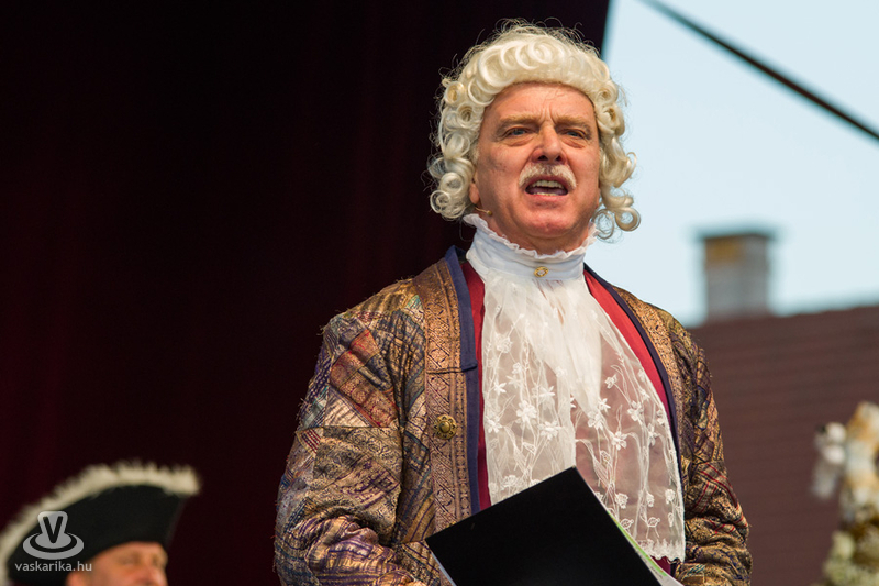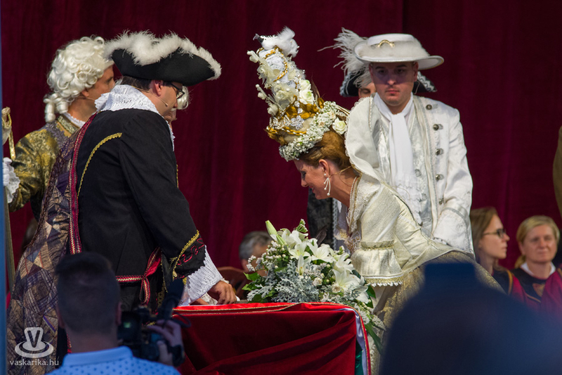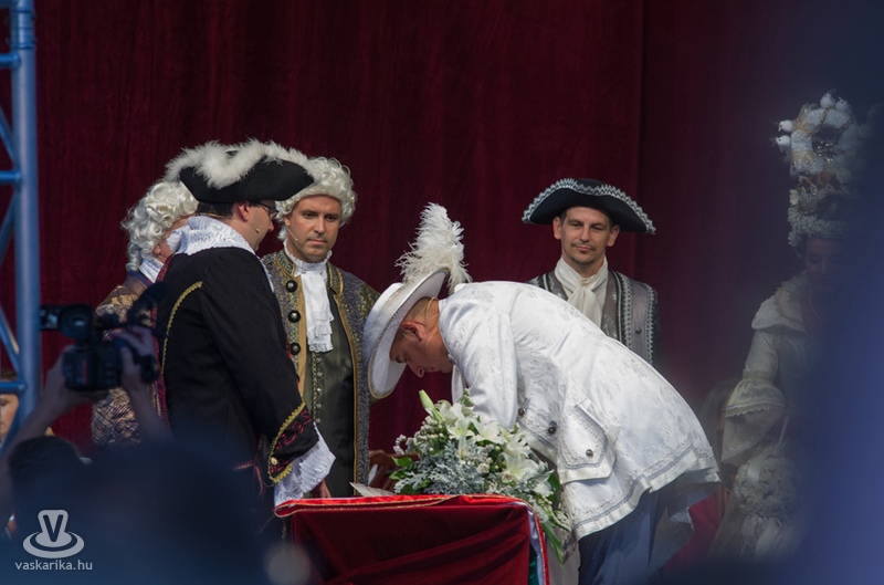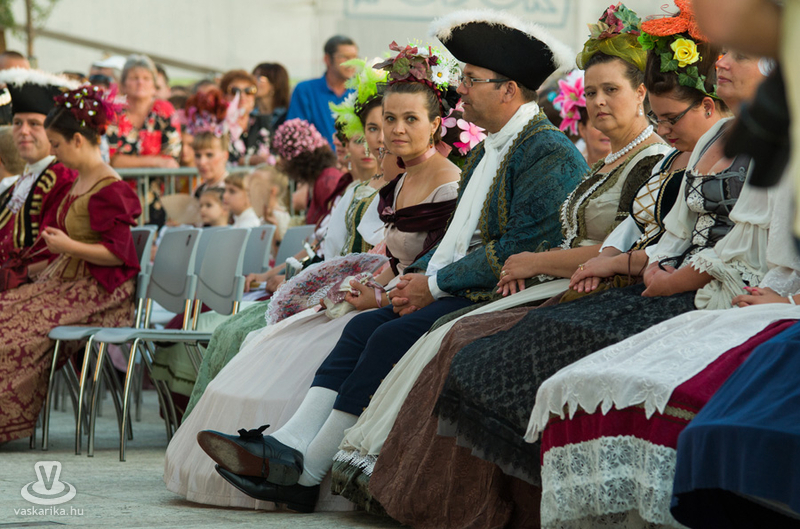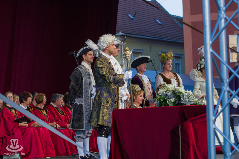A színpompás menet a Dunakapu térig, a Barokk esküvő helyszínéig vonult, ahol vőlegény térden állva kérte meg arája kezét, fogadalmuk után aláírták a móringlevelet a hozományról, a város „elöljárója" pedig megerősítette együvé tartozásukat, s ujjukra került a jegygyűrű. A nyoszolyólányok a menyasszony fejére helyezték az asszonyság jelképét jelentő fejdíszt, amit a vőfély karddal vett le fejéről, s a nézők közé hajította. A menyasszony Kiss Zsuzsanna Judit, a vőlegény Kőhalmi András volt.