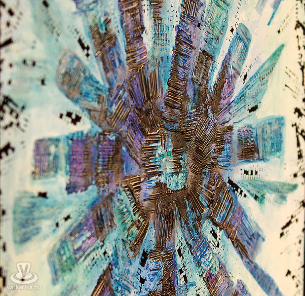 Eszter művészetét nézve nagyon szerencsés gondolkodás- és kifejezésmódot talált magának: ez egy kvázi absztrakt művészet. Azért kvázi, mert nagyon sok bekódolható képelem is van benne, de első ránézésre ez egy erősen elvonatkoztatott művészet, aminek megvan mind az európai, mind az Európán kívüli gyökere. Nagyon sok távol-keleti, ázsiai vonatkozása van ezeknek a képeknek.