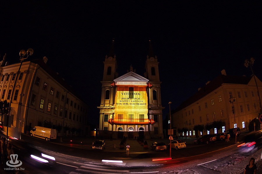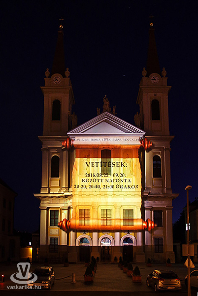 Két napja hivatalosan is fényruhát ölt a Székesegyház 20:20 és 21:10 között. A közel 10 perces, speciális technikával az épületre vetített animációs képeken feltűnnek a város első római lakói, a középkor küzdelmei, a nagy tűzvész motívuma, a barokk templom épülése, a polgári város fejlődése, a legendás szombathelyi villamos és a székesegyházat is megrongáló bombázás. A látványos fényjáték szeptember 20-ig, naponta 3 alkalommal látható a templom homlokzatára vetítve.