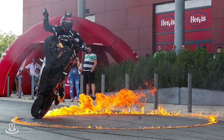 A VII. Motoros és Baleset-megelőzési Napon a Family Center előtt parádézott motorjaival Tápai Tamás stunt rider. Az olykor benzingőzbe és gumifüstbe burkolózó közönség a show zárórészében egy ördögi "lánglovag" tüzes mutatványának tapsolhatott, aki még a tűzkarikán is átrepült. A félórás brillír végén a streetfighter show-k sajátosságaként megkapta a publikum az elmaradhatatlan gumielfüstöltetést is.