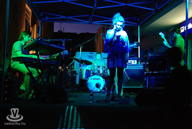 Az est egyik legjobban várt koncertje fél kilenckor kezdődött a Mediterrán Udvarban: Misky Ádám csapata, a Voler Mouche adott kellemes hangulatú koncertet az udvaron. Az impressziókra épülő lounge zenét játszó, kezdetben elektronikus formáció 2007-ben nőtte ki magát zenekarrá, és épp egy évvel ezelőtt, a 2008-as karneválon mutatkozott be a nagyközönség előtt. Többször megírtuk már, hogy ez a csapat ebben a felállásban annyira ütőképes zenét játszik, hogy lassan a kereskedelmi rádióadók is kivethetnék rá hálójukat. Korszerű és igényes zene ez, remek zenészekkel, és ahogy Ádit ismerjük, maximalizmusa hamarosan országos köztudatba repíti (sic!) a Voler Mouche-t!