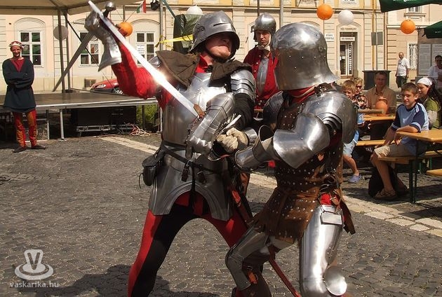 Délután egy óra tájékán arra lettünk figyelmesek, hogy a Mátyás Király Fogadó előtt szép számú közönség gyűlt össze. A Mathias Rex Történelmi Hagyományőrző Egyesület tagjai ugyanis megszállták a háremet, a vásártérre csalogatták őket, ahol aztán táncra „kényszerítették" a lányokat. A csípők mozogni kezdtek, a legyezők kinyíltak, a színes fátylakat fújta a szél, a kard pedig a leggyakorlottabb hastáncos fején táncolt végig egy számot. A hagyományőrző egyesület felajzott vitézei ezek után teljesen magukénak akarták a lányokat, párbajra hívták a hárem őrét. Végül azonban ez utóbbi akadt kardvégre, „a lányok pedig mentek a közösbe".