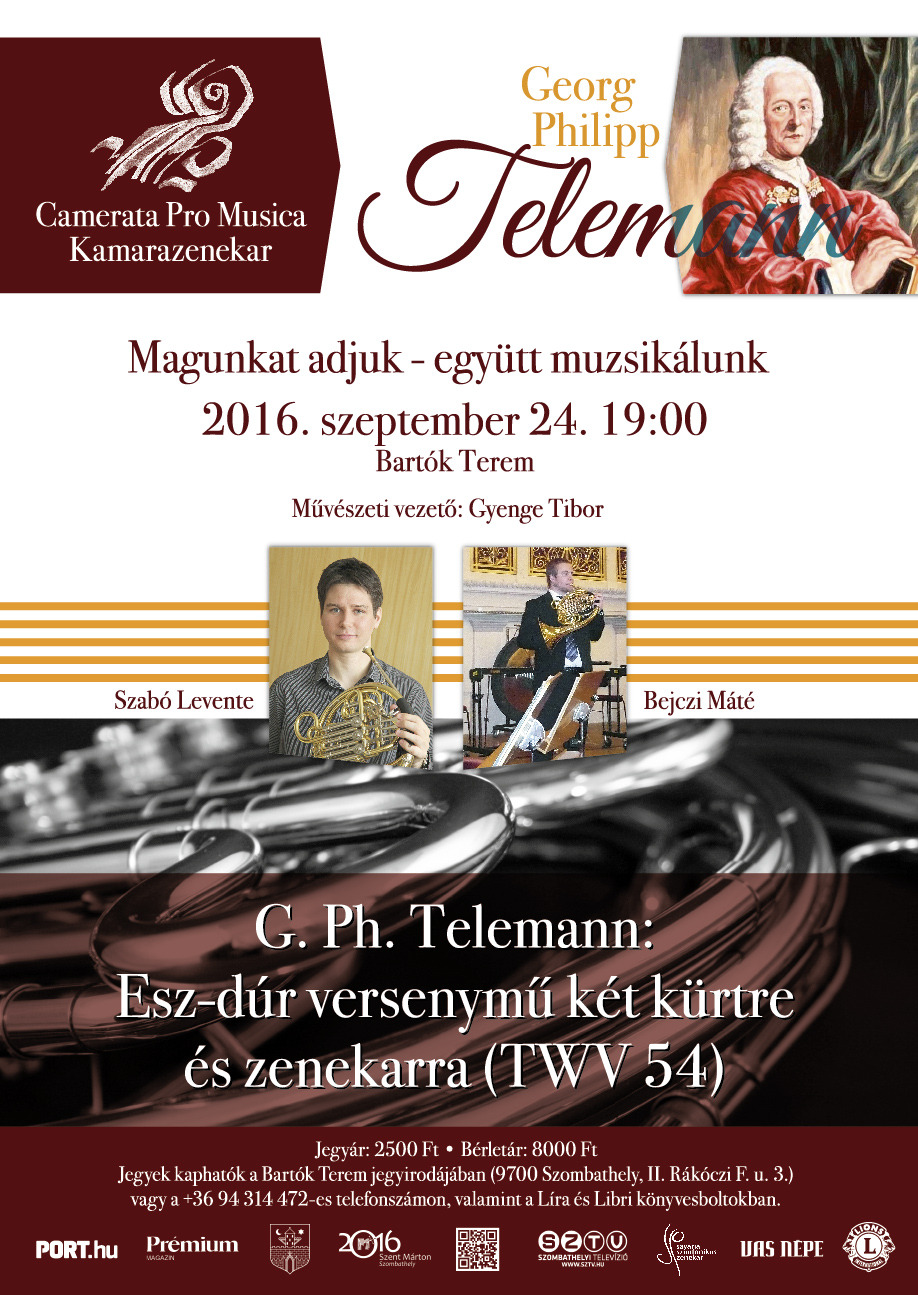 A Camerata pro Musica kamarazenekar Szent Márton sorozatának következő koncertje szeptember 24-én kerül megrendezésre a Bartók Teremben. A 19.00-kor kezdődő hangversenyen Georg Philipp Telemann műveiből válogatott Gyenge Tibor művészeti vezető.
