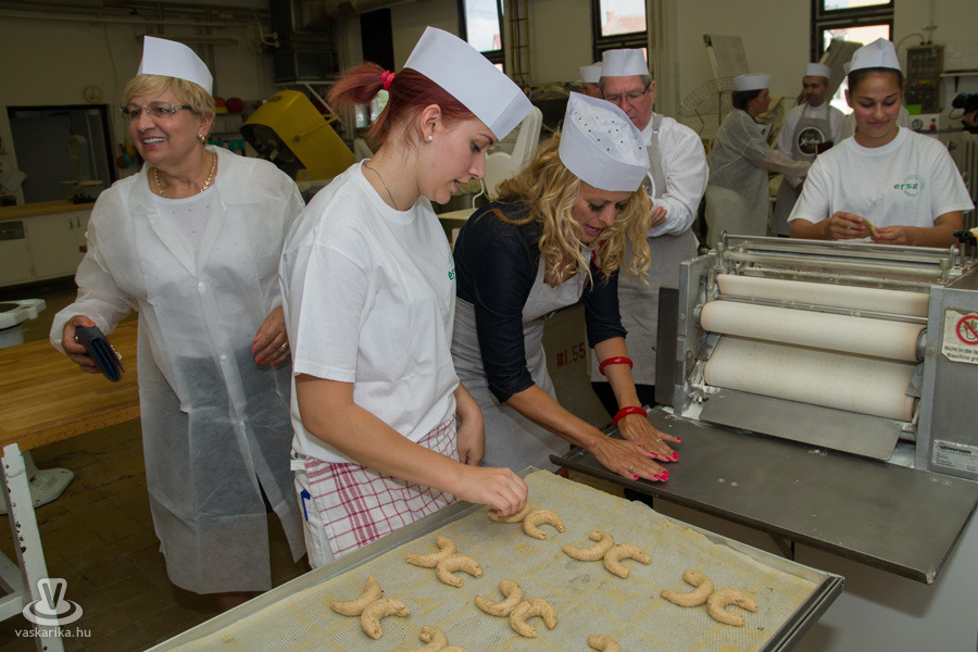Sütik már a pékek és a pékinasok a Szent Márton kiflit. Minderről egy különleges és sajtónyilvános sütési bemutatón győződhettünk meg szeptember 22-én: megnézhettük miből, hogyan és mivé sütik a Szent Márton kiflit, ami a közeljövőben a szombathelyi közétkeztetésbe is bekerülhet (tízóraiként, uzsonnaként, büfékben kapható termékként).