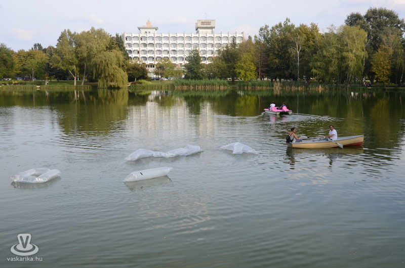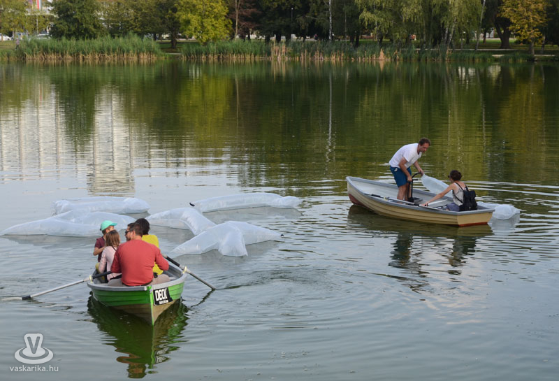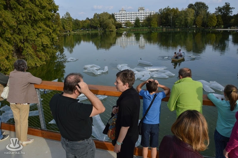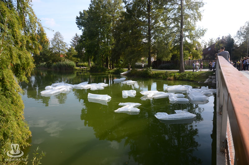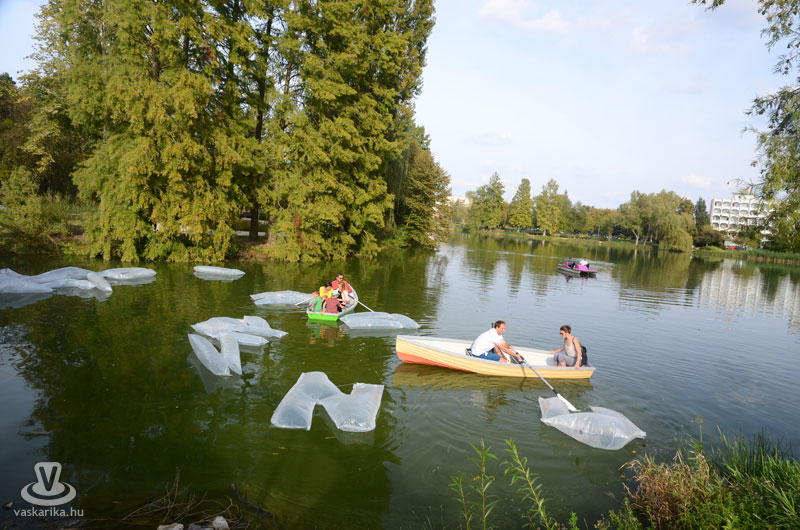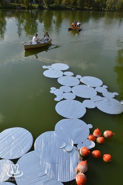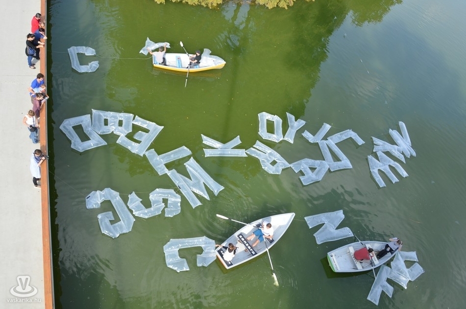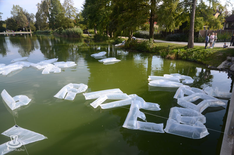 Szeptember 24-i bemutatkozón a tó képzőművészeti játszótérré alakult. Óriás betűlevessé vált a víz, a betűből a csónakázók kedvükre való szavakat formálhattak.