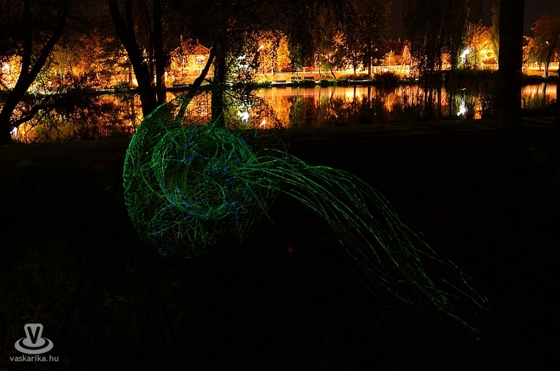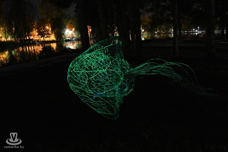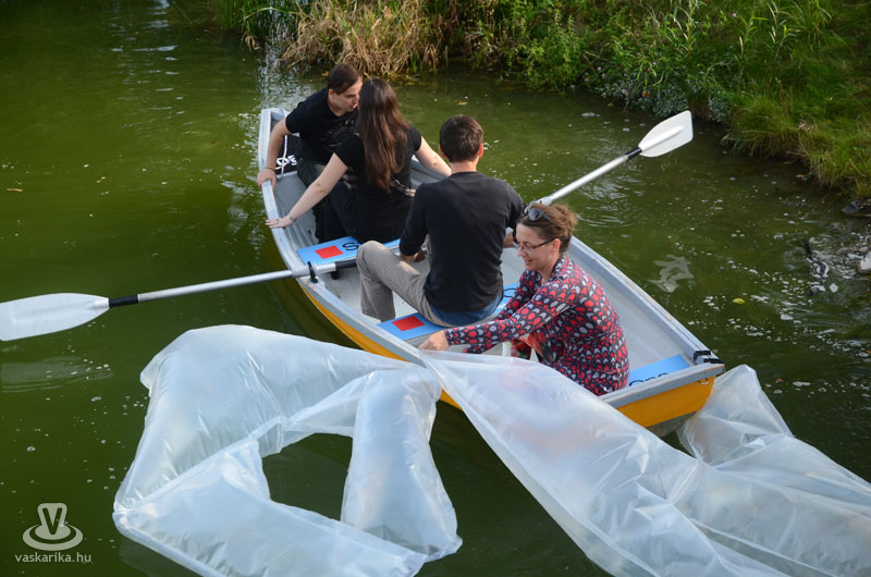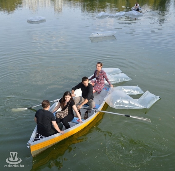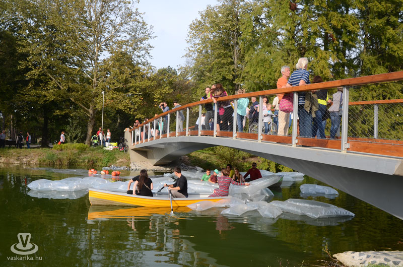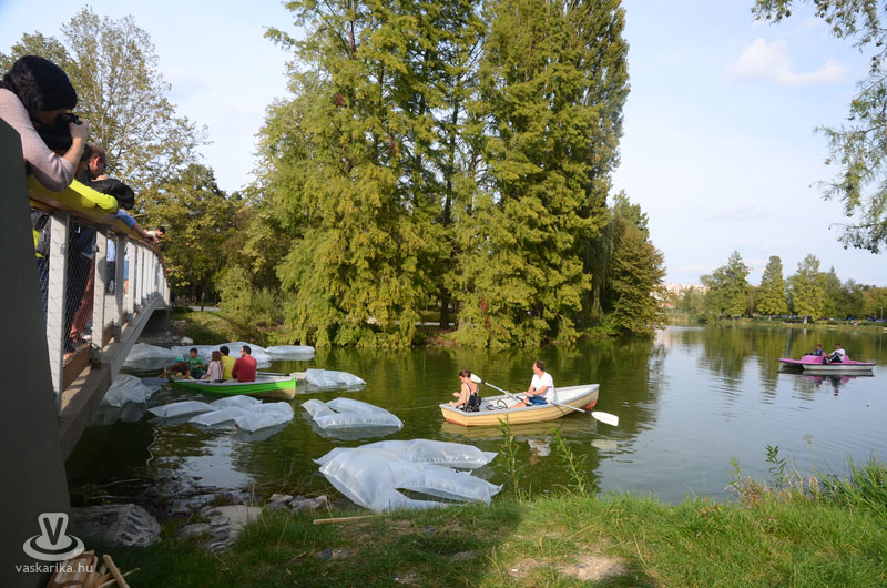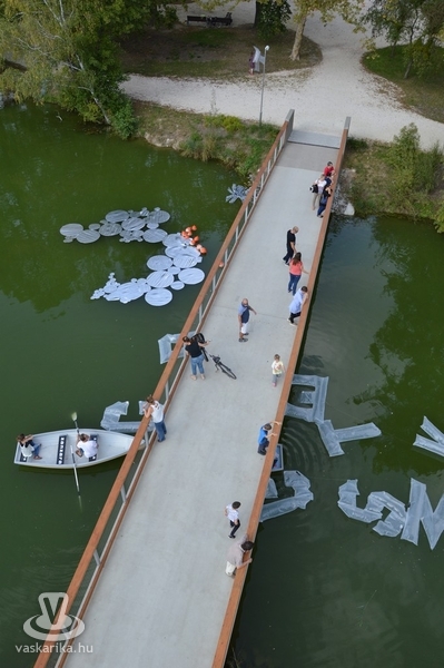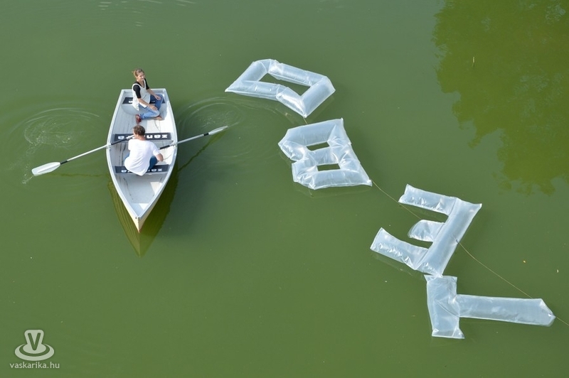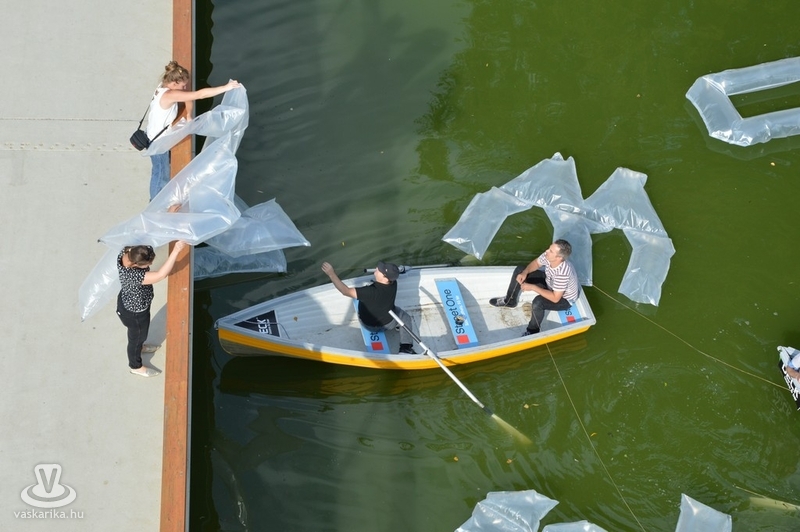 Szeptember 24-i bemutatkozón a tó képzőművészeti játszótérré alakult. Óriás betűlevessé vált a víz, a betűből a csónakázók kedvükre való szavakat formálhattak.