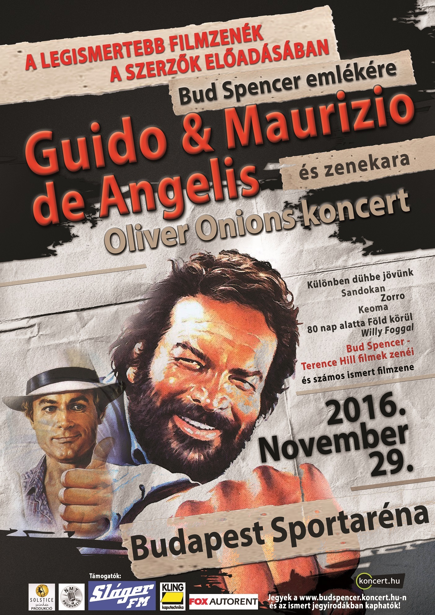 Guido és Maurizio De Angelis pályafutásuk során világ leghíresebb filmzene írói közé emelkedtek. Oliver Onions néven ők írták a legtöbb Bud Spencer és Terence Hill film zenéjét, de kiterjedt munkásságuk alatt több álnéven is dolgoztak (Guido & Maurizio De Angelis, M&G Orchestra, Dilly Dilly, Oliver Onions). A világhírű olasz szerző és előadóművész testvérpár egy nagyszabású koncerttel rója le tiszteletét Bud Spencer előtt, személyes barátként elbúcsúztatva a nemrégiben elhunyt világsztárt. A „Különben dühbe jövünk", „Az ördög jobb és balkeze", „Az angyalok is esznek babot", a „Bűnvadászok", a „Seriff az égből", a „Banános Joe", - hogy csak egy párat említsünk a legnagyobbak közül - zenéi most egy nagyzenekari koncerten elevenednek meg a Papp László Budapest Sportarénában.