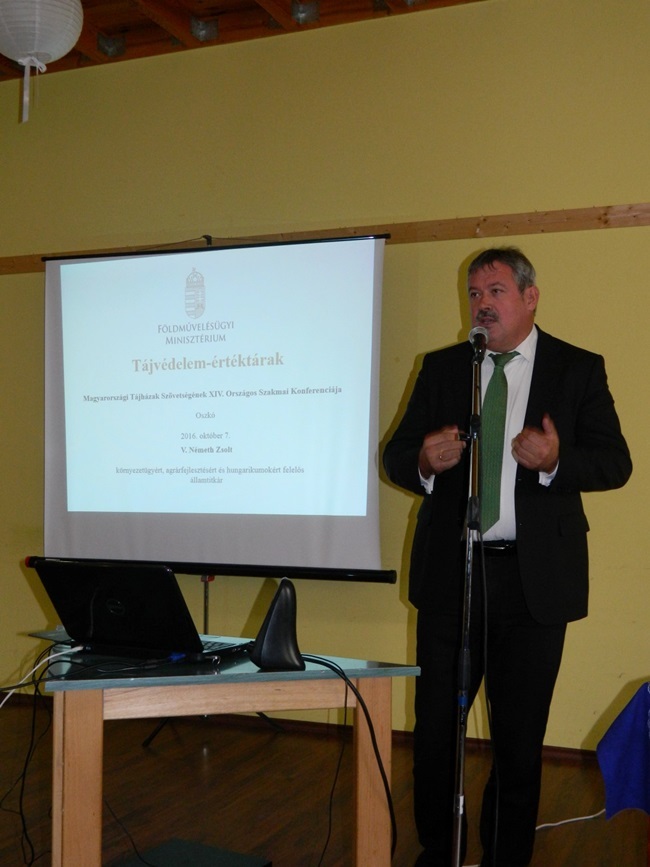 A díjátadó után V. Németh Zsolt államtitkár úr a Tájvédelem-értéktárak címmel bemutatta a magyarországi természeti és nemzeti értékek felépítését, egymáshoz kapcsolódását. Felhívta a figyelmet a tájidentitás csökkenésére, az elvárosiasodás általi negatív hatásokra, természetesen magyar ellenpéldát is bemutatva. Elismeréssel szólt a Tájházak értékmegőrző szerepéről, a nemzeti parkok és egyre inkább elterjed erdei óvodák, ökoiskolák és hasonló zöld programok fontosságáról.
