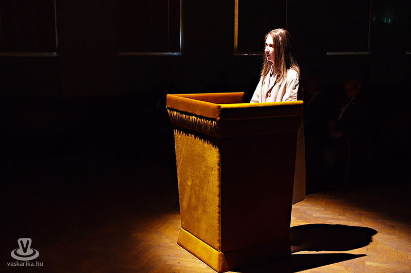 A beszédet követő koszorúzás után a Művelődési Központ színháztermében folytatódott a megemlékezés, ahol a Sok-Szín-Pad Társulat "Ilona - egy '56-os per története" című ünnepi előadását láthatta a közönség. A valós estet feldolgozó történetet Pataky Laura rendezte, a főszerepet lapunk fotóriportere, Sulics Boglárka alakította. A történet szerint Tóth Ilonát 1956. november 20-án társaival együtt letartóztatták, majd szervezkedésben való részvétel és gyilkosság vádjával halálra ítélték, és 1957. június 27-én felakasztották. A vád állítása szerint 1956. november 18-án Gyöngyösi Miklós és Gönczi Ferenc segítségével meggyilkolta Kollár István rakodómunkást, mert az Államvédelmi Hatóság tagjának vélték. A darab további szerepeiben a bírót Nika Róbert, az ügyészt Sulyok Gergő, az ügyvédet Firisz Tamás, a siratóasszonyt Pintér Anikó, az őrt Varga Krisztián, míg Ilona barátját (hangról) Szigeti Ildikó alakította.