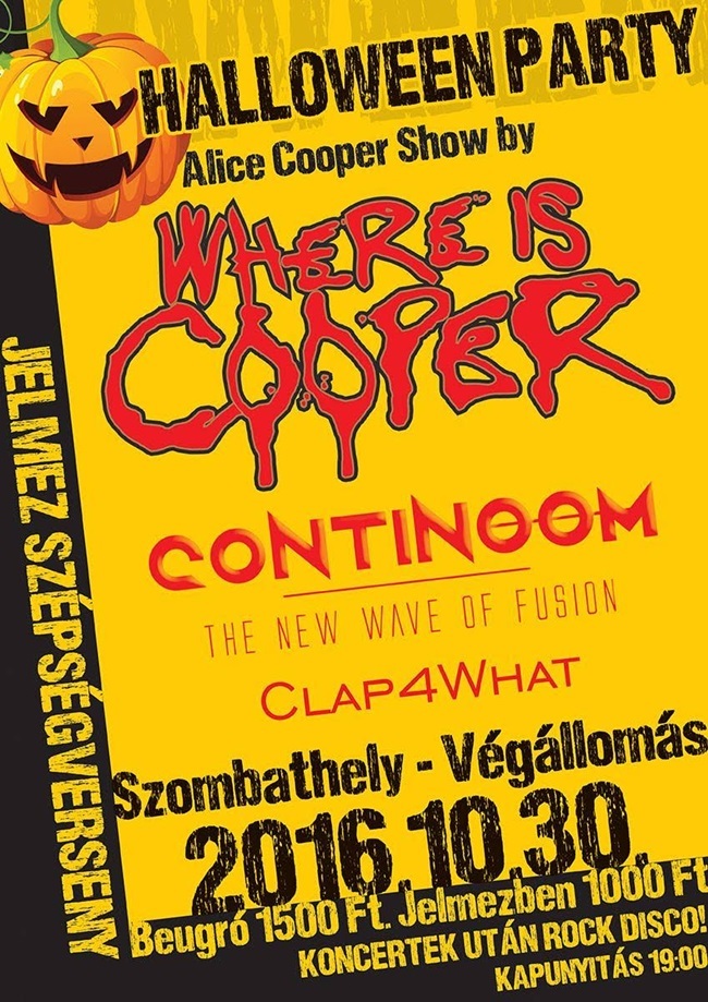 A buli keretében hozzánk látogat a Where Is Cooper /Alice Cooper tribute zenekar/ és egy vadiúj stílusú, fúziós banda a Continoom, hogy egy fergeteges bulit adjanak.