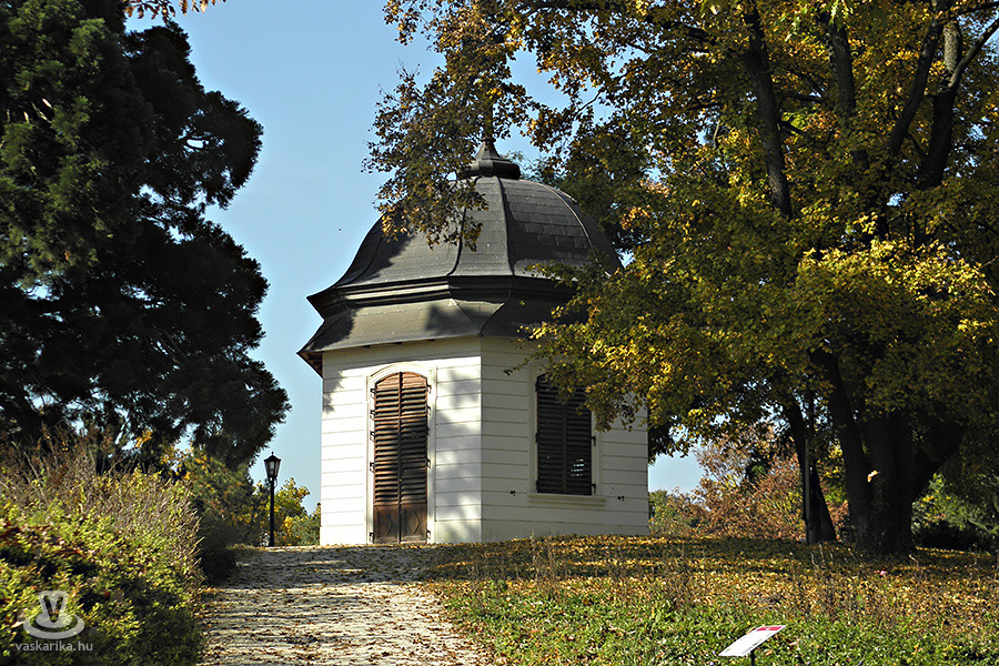 A gödöllői kastély parkja 5,2 hektár alapterületű. A park nevezetessége a Királydombi pavilon, amely egy hatszögletű épület. A pavilont Grassalkovich I. Antal emeltette, belsejét faburkolatokba illesztett olajportrék díszítették a honfoglalás kori magyar vezérek és a magyar királyok arcképeivel.