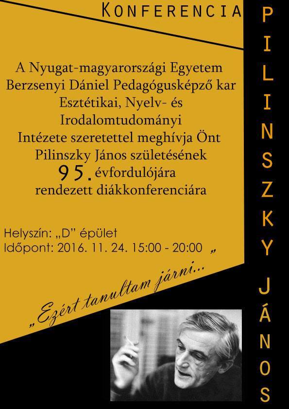 Az NYME BDPK Irodalomtudományi Intézete Pilinszky János születésének 95. évfordulójára rendez diákkonferenciát.