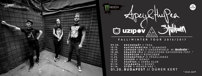 A modern rock és metal zenék hazai kiválóságai lépnek a Végállomás színpadára. Érkezik az Apey and The Pea, az Uzipov és a Stubborn.
