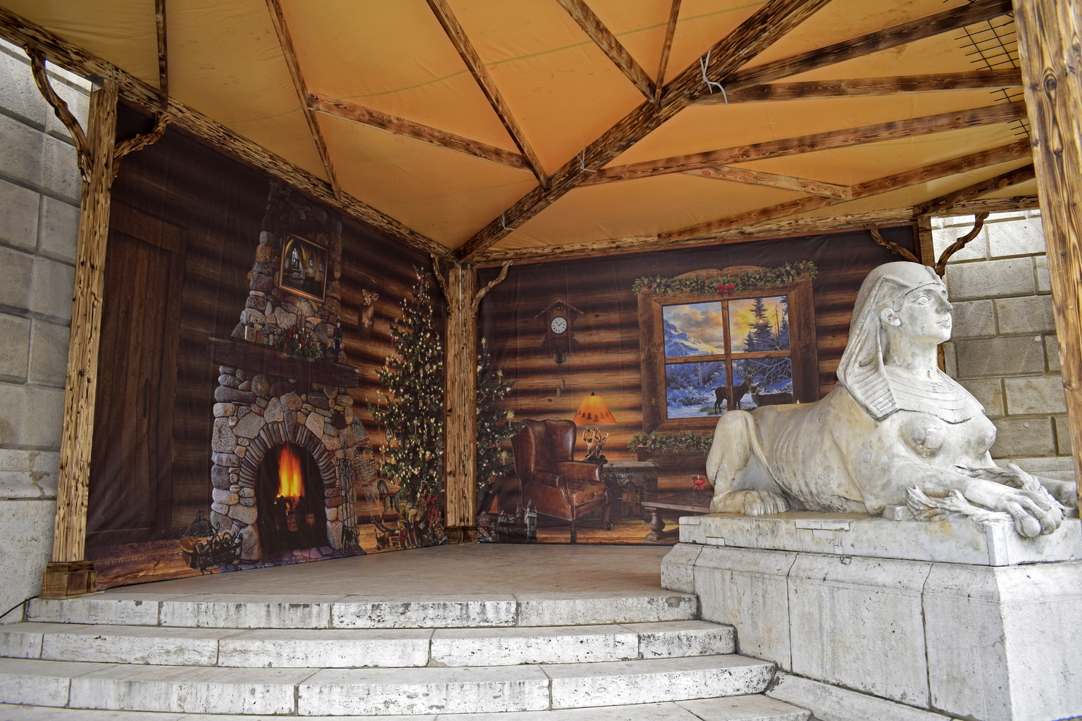 Ünnepi szobababelső installáció a szfinx szobor mögött a Magyar Állami Operaház külső terében (Fotó: Róka László)