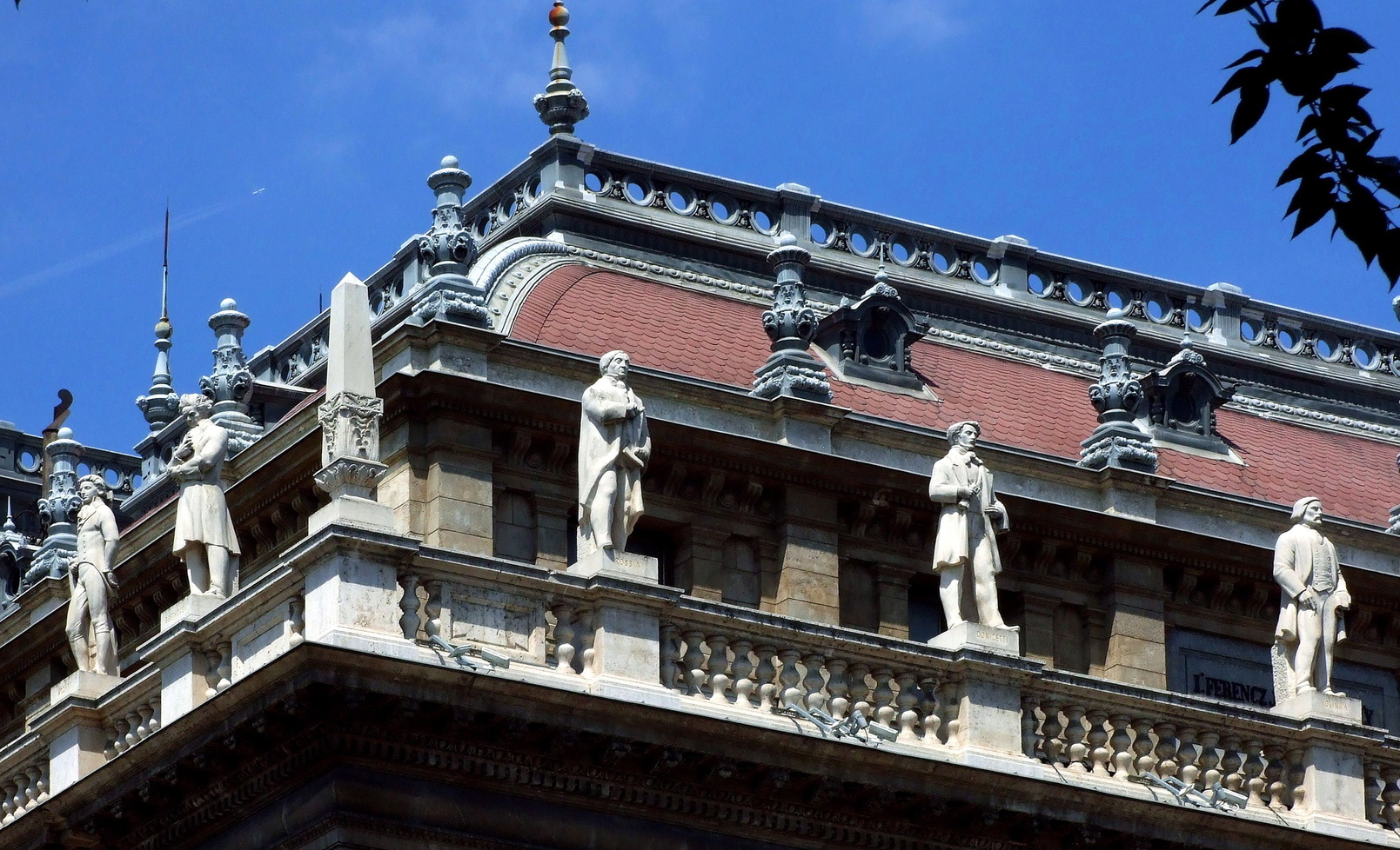 Zeneszerző-óriások szobrai a Magyar Állami Operaház neoreneszánsz épületének homlokzati párkányán (Fotó: Jászai Csaba)