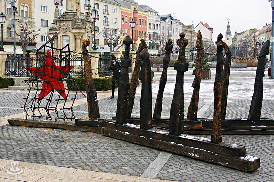 Az installáció a rendszerváltás legendás művésztársasága, a 301-es parcella kopjafáit is elkészítő Inconnu Csoport alkotása. Szombathely főterén január 31-ig tekinthető meg.