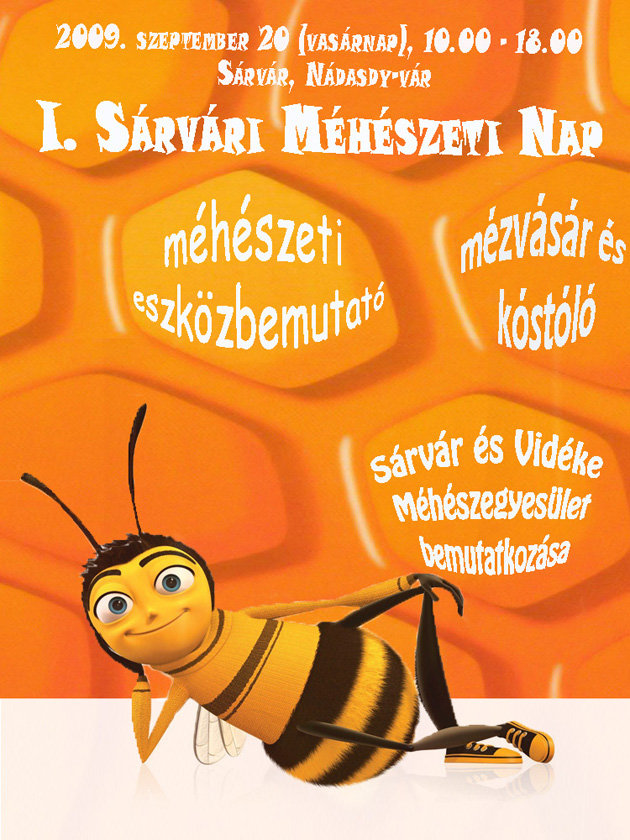 I. Sárvári Méhészeti Nap a III. Környezetvédelmi nap programsorozatán belül. Az egész napos rendezvényen bemutatkozik Sárvár és vidéke méhészegyesület, lehetőség lesz mézvásárlásra illetve mézkóstolásra. Mindezek mellett filmvetítés, és méhészeti eszközbemutató várja az érdeklődőket.