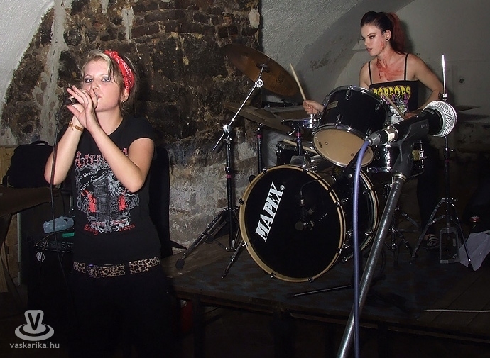 A The Hellfreaks nyitotta az estét fél tizenegy magasságában. A műfajában leginkább a 70-es, 80-as évek surf-rockját és a psychobilly stílusjegyeit magánviselő banda óriási energiával, kemény és szuggesztív énekkel, és a már említett vokalista zombilányokkal egy percig sem hagyta unatkozni a közönséget. "Gyertek közelebb, annyira magányosnak érzem magam" - mondta mindjárt az elején Shakey Sue, aki a véres külsőségek ellenére is hihetetlen bájjal és kisugárzással bírt. Nem is kellett sokáig udvarolni, hamarosan kényelmesen telítődött a táncparkett, a színpad pedig közelített a felrobbanáshoz. Sue az egyik pillanatban a nagybőgőre ugrott, a másikban épp a földre rogyva kántálta a szöveget, miközben a két sick chick a vokál posztján teljesített: erotikában, erőszakban és vérben bővelkedő show-val támogatták meg a zeneileg is erősen figyelemreméltó produkciót. Az orvosi fecskendőből röviditalt spricceltek egymás szájába, bárdokat lengettek és mindemellett precízen ismételgették Sue refrénjeinek sorait. A klub egyik civilben meghúzódó, szintén zenész vendégével beszélgetve felmerült, hogy ennyi látványelem talán kicsit már sok is egy estéhez, mindenesetre nézni és fényképeznivaló bőven akadt Hellfreaks-ék műsorának minden pillanatában, a La Bouche sláger pedig nagyon ütött hellfreakszesen.