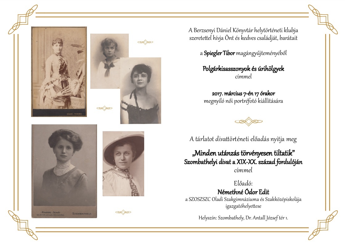 Aki tehát bepillantást szeretne nyerni a divat világába, illetve szívesen megtekintené a korabeli fotógyűjteményt, az látogasson el a Berzsenyi Dániel Könyvtárba 2017. március 7-én!
