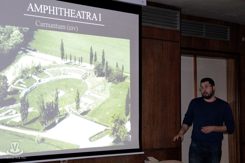 Az előadás szűkebb témája az egykori pannóniai kocsiversenyekkel, gladiátorviadalokkal foglalkozott, melyeket Agócs tanár úr a megszokott módon, igen gazdag forrás- és képanyaggal illusztrált. Olyan kérdésekre kaptunk választ, mint honnan tudunk e játékok létezéséről, mennyi férőhelyes volt egy-egy amfiteátrum, vagy milyen kialakítással rendelkeztek.