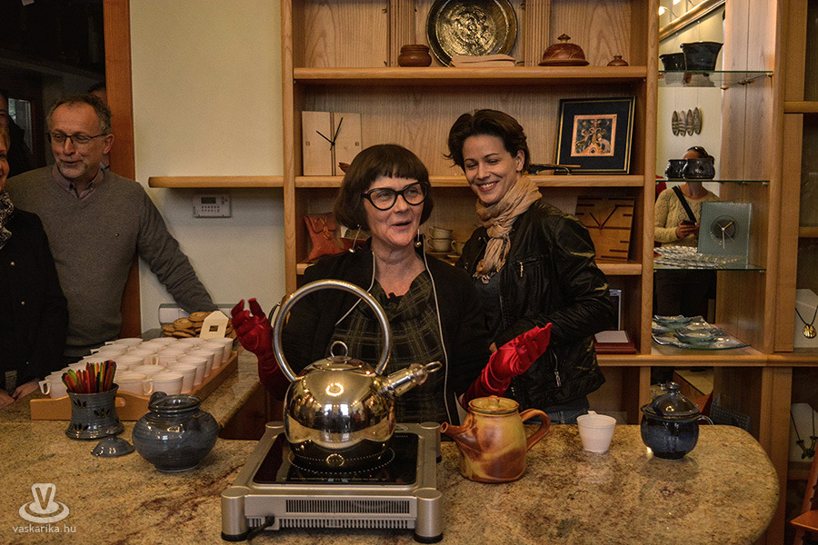 Miután mindenki kellően átmelegedett, a fotókiállítás nyitányaként Veres Éva a "Kérlek, hogy kezd el a varázslatot" mondatot követően odalépett az asztalhoz, és feltette a teavizet. Kezdődött a performansz. Kiderült, hogy érdekes, vicces, sejtelmes és feszült is tud lenni egy tea elkészítése.