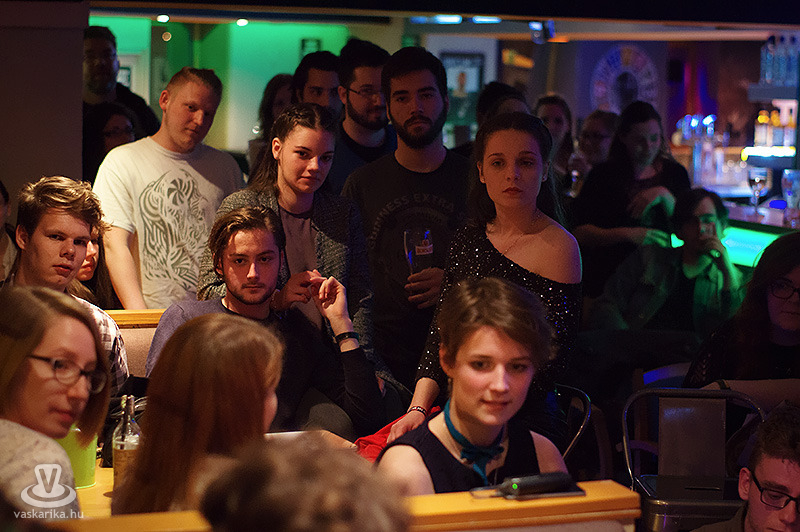 Az est rendhagyó mivoltát még az is növelte, hogy komoly műsorral készültek többen is. Mihajliv Renáta és Teleki Blanka megzenésített versekkel nyitották meg az estet, József Attila, Radnóti Miklós és Pilinszky János egy-egy művével. Katartikusan szent pillanat volt a néhány perc, mennyei angyalhangon. A kontraszt fenntartásához ezt követően urak voltak porondon, méghozzá egyik hallgatótársunk, Stamler Lili drámájával. Robert Merle hatalmasat mosolygott volna azon, milyen jól áll neki a sarokülőn keresztbevetett lábbal ücsörgés. Aztán nem tudom, a férfiak mennyire élveztek volna védettséget, ha a kihalás és a nők általi világuralom fenyeget, de ilyenről szerencsére nem esett szó.