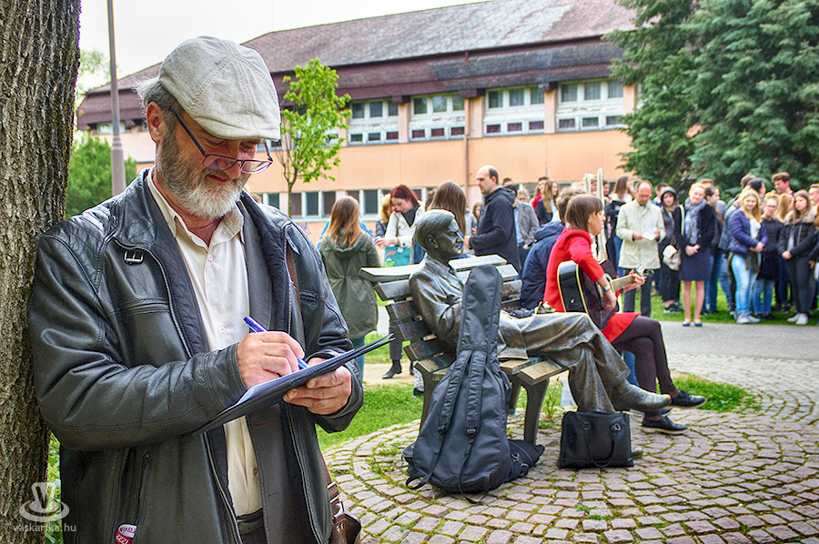 Megtelt a versfal a Weöres Sándor-szobornál, a diákok és a felnőtt verskedvelő helyiek lelkesen ragasztgatták a verseket. Főleg a klasszikus költők domináltak, de volt, aki a saját versét hozta el.