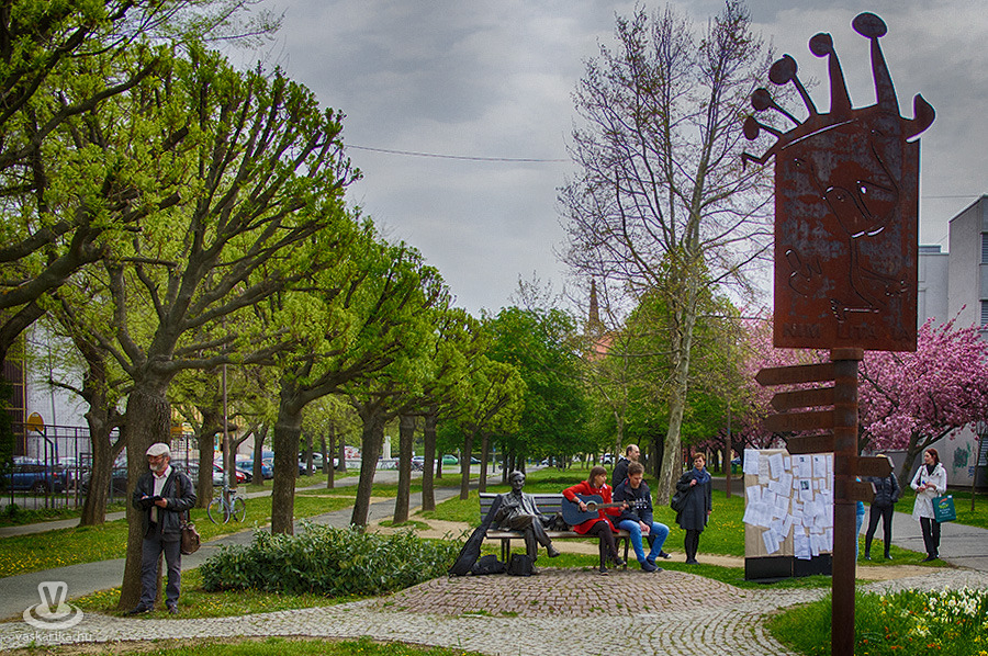 1964 óta ünnepeljük a magyar költészet napját, s ahogy Novák Edina, az AGORA Szombathelyi Kulturális Központ marketingvezetője elmondta, a közös versfal készítés célja az, hogy megszerettessék a verseket az emberekkel, különösen a fiatalabb korosztállyal. Hogy a szándék elérte a célját, a lelkes diákok bizonyították. Lutor Katalin és Doma Bence megzenésített verseket adtak elő, hangjuk messze szállt az egyre erősödő szélben.