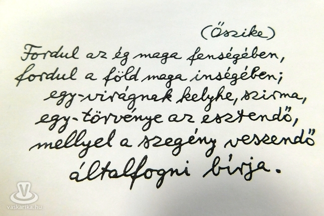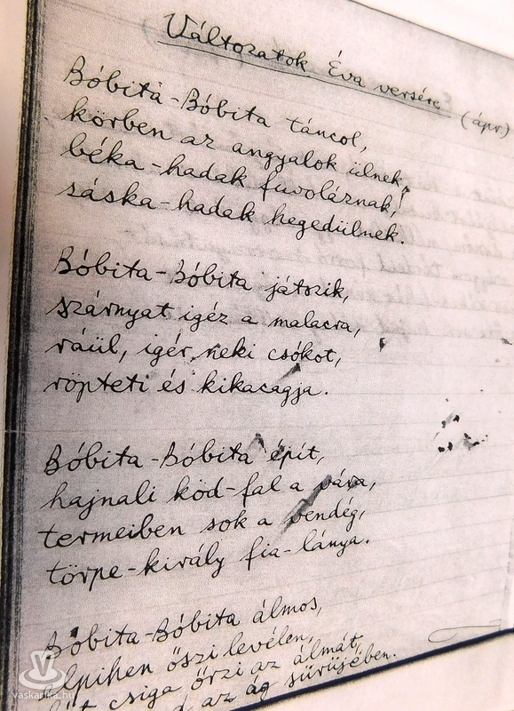 „Egyszer S. É. költőnővel üldögéltünk a háztetőn, mint a cserepesek. Indítványoztam, hogy írjunk együtt egy dialogikus verset: egy strófát ő, egy strófát én, és így tovább, fölváltva, míg a befejező részhez nem jutunk. Éva beleegyezett: csak kezdjem meg a verset. Az indítványt én tettem, hát már nem hátrálhattam a feladat elől; éreztem, hogy nem lehet épkézláb verset írni szándékos nekifutással, ahogy egy sövényt átugrik az ember; és holmi szokványos bók-ritmust sem tákolhatok össze, mert a kolleginának jó ízlése van."