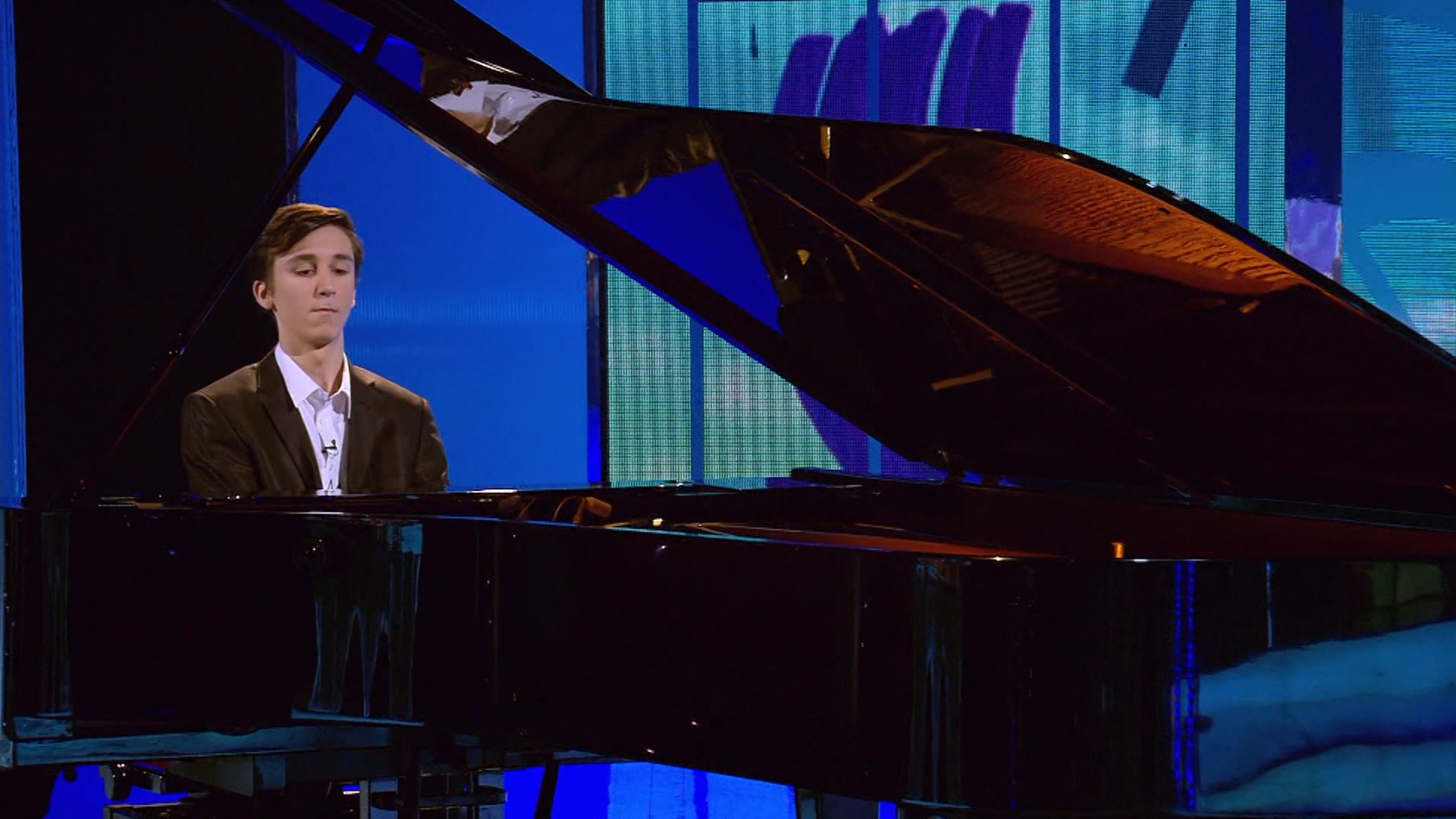 Magyar Valentin, budapesti zongorista, aki már az első évadban is hegedűvel távozott, így a Virtuózok történetében ő az első, akinek két hegedűszobra is van (Fotó: MTVA)