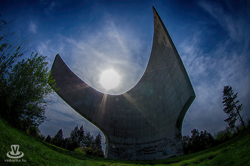 Az Emlékmű, akárhogyan is fotózzuk, mindig tartogat érdekes "párhuzamokat". Lehetne egy kitárt szárnyú angyal, egy lobogó fülű elefánt, vagy akár fallikus szimbólum. Hanyatt fekve ilyennek mutatta magát a vasbetonkolosszus a tavaszi verőfényben.