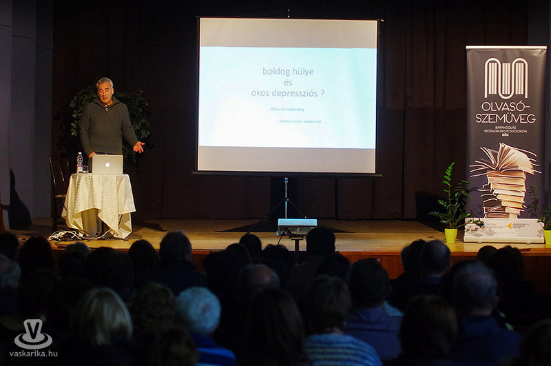 Kepes András író, újságíró, televíziós műsorkészítő és nem mellesleg utazó volt a Büki Művelődési és Sportközpont, Könyvtár OLVASÓSZEMÜVEG című sorozatának vendége. A színházterem csaknem teljesen megtelt, száznál is többen jöttek el, hogy meghallgassák a híres tévés személyiség előadását. Az érdeklődők között jócskán akadtak szombathelyiek, de voltak a bükfürdői szállodákból is. Az előadás mottója: „A boldog hülye és az okos depressziós" Popper Pétertől származik. Az állítás szerint az ember vagy boldog lesz és „hülye", vagy intelligens és depressziós.