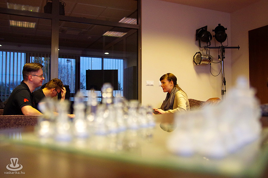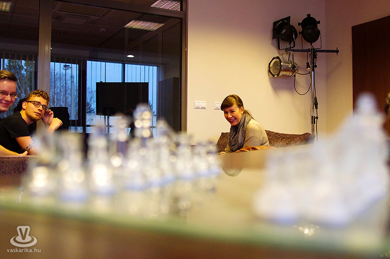 Ha röviden akarok válaszolni, akkor azt felelem, hogy a Kálmánchelyi Zolié. Amikor kiválasztottuk a darabot, Jordán Tamás azt javasolta, hogy játsszuk az előtérben egy nagy asztalnál, amit körbeülnek a nézők. Gondolkodtam rajta, de kétségeim voltak: pont az-az atmoszféra nem születik meg, ami a darab lényege, a bezártság és szeparáltság. Zolinak elmeséltem a kételyeim, és azt felelte: „Miért nem viszitek be az igazgatói irodába?" De hát nem hallatszik ki innen a hang!- feleltem. „Majd kihangosítjátok!"
