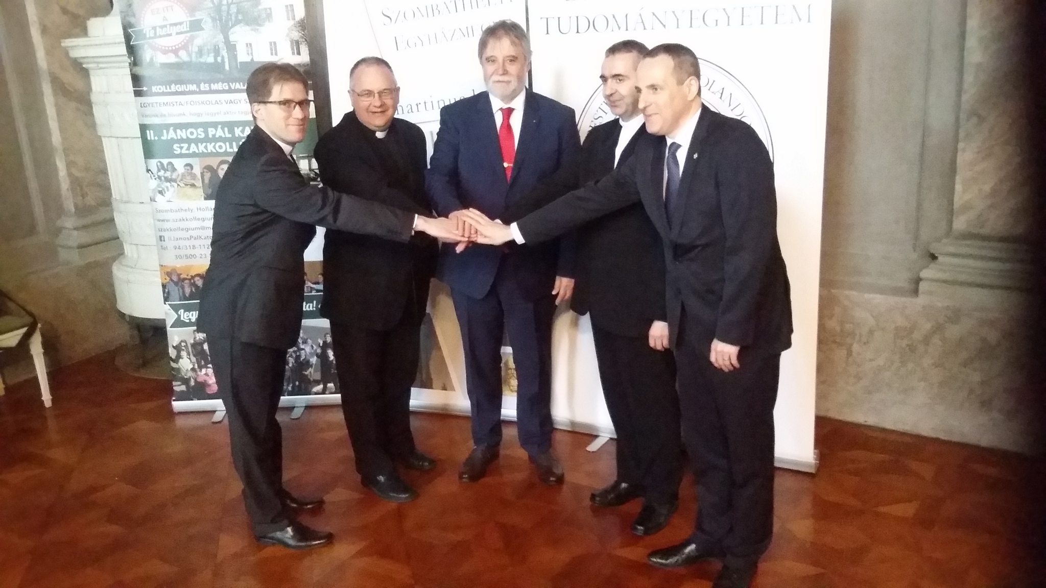 Házigazdaként köszöntötte a vendégeket Császár István atya, a Szombathelyi Egyházmegye kormányzója, kifejezve örömét, hogy az ELTE-vel való megállapodás ilyen történelmi helyen köttetik, Szily János püspök palotájában. Már az ELTE alapítása is összeköti az egyetemet az egyházzal, hiszen jogelőd intézményét 1635-ben Pázmány Péter esztergomi érsek hozta létre Nagyszombat városában. Az egyháznak folyamatosan szívügye az oktatás, a jövő generációinak nevelése.