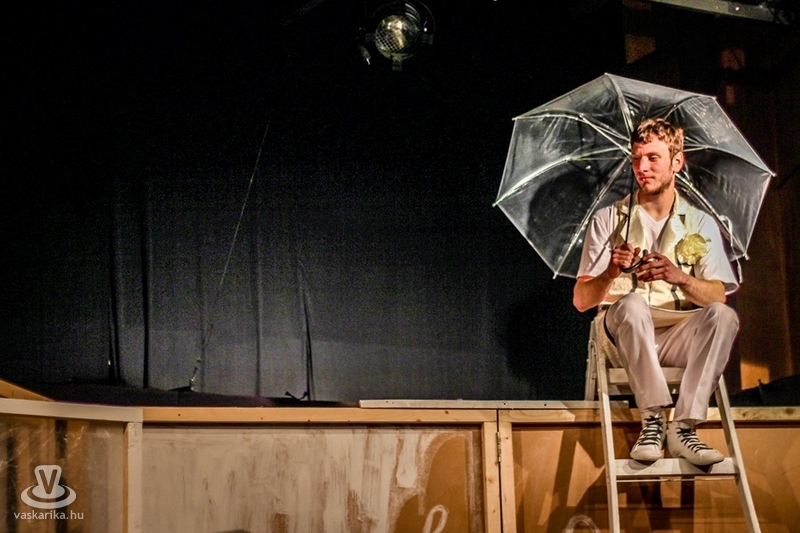 Az éppenmostban ülünk és várunk, ahol a fehér háttér előtt fehér ruhában szökdécsel a mesélő Amika cukrászdájának történetét elbeszélve. A mesekönyv lapjai vertikálisan alakítják a színpadi eseményeket. A mesélő lapoz, a szereplők bújnak. Ez egy olyan mese-ozmózis - a koncentráció kiegyenlítéséért persze féligáteresztő könyvlapokon keresztül. Szóval a történet Amika szerencsétlen életismétlődésére épül: egy újra és újra megnyitott és csődbe ment cukrászda okán. A probléma pedig nem más, mint a már-már túl különlegesnek tűnő édességek.