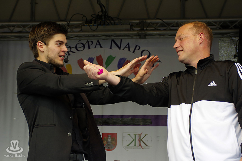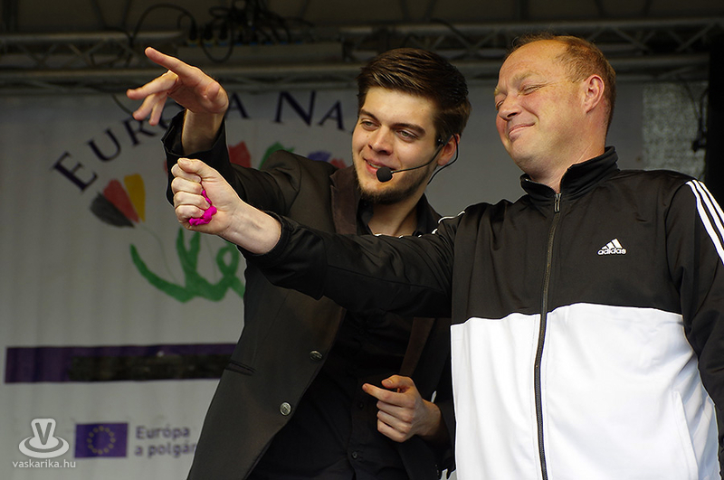 Az Európa Napok zárónapján Nagy Jonathan illuzionista kápráztatta el közönségét - elsősorban a gyermekeket - lélegzetelállító trükkjeivel. A négynapos rendezvény ideje alatt a Szabadság tér melletti zöldterületen - korfüggetlenül - mindenki próbára tehette ügyességet, leleményességet! Volt itt kisautós tekerős játék, lyukas tábla, horgászat fateknőből, kacsaröptető, gólyalábak egész serege! Ha mindez nem lett volna elég, lehetett vadászni sárkányra, ágyúval lövöldözni, lengőtekézni, diót törni, karikát dobni és babzsákot kapkodni. Ahogy az fotóinkon is látható!