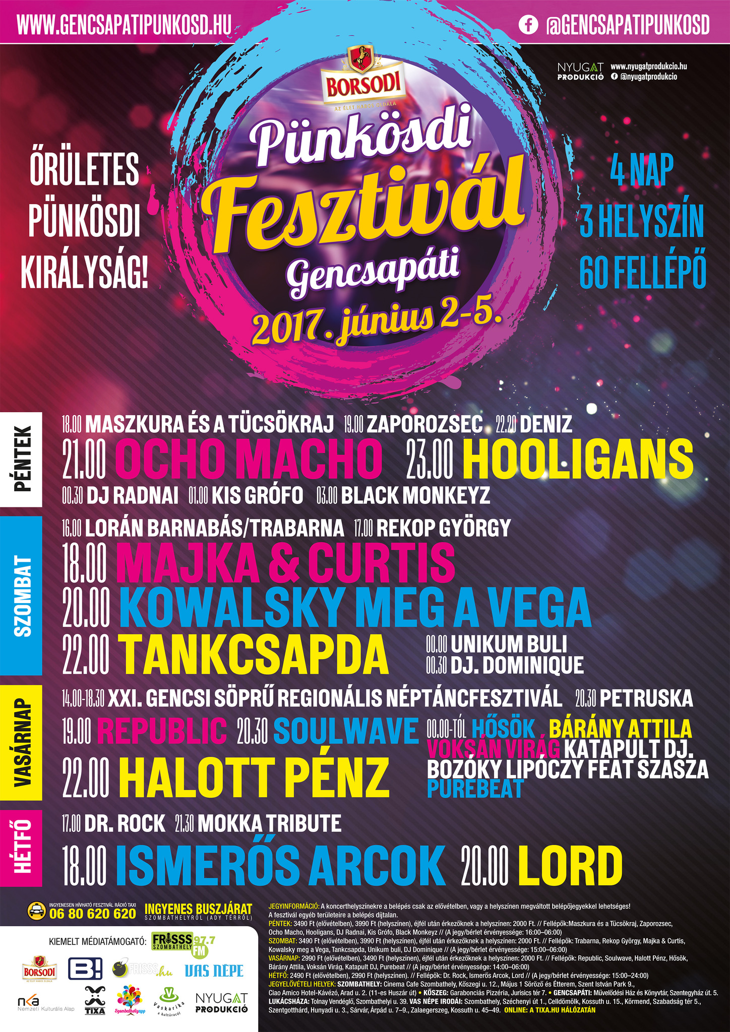 Pénteken: Maszkura és a Tücsökraj, Zaporozsec, Ocho Macho, Hooligans, Deniz, Dj Radnai, Kis Grófo, Black Monkeyz