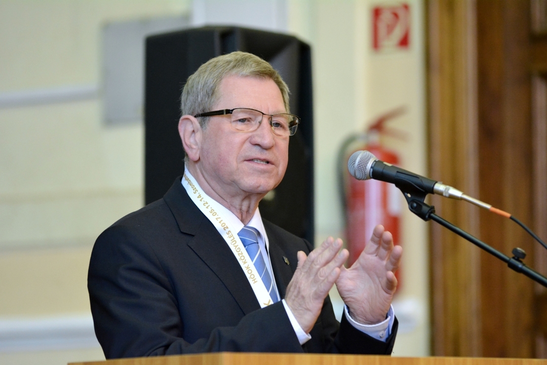 A képviselő úr természetesen helyi kötődéseit is felidézte, ugyanis a küldöttgyűlésnek otthont adó díszterem volt középiskolájának ceremóniaterme. Ő akkor az ELTE-re készült, de legvadabb álmaiban sem gondolta, hogy egyszer az ELTE jön el ebbe az épületbe. Felidézte a város múltját: Szombathely az egyetlen kétezer éve folyamatosan lakott közép-európai város, és örömteli, hogy a legrégebbi máig működő magyar egyetem már ide is tartozik.