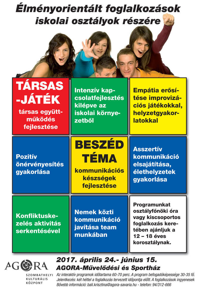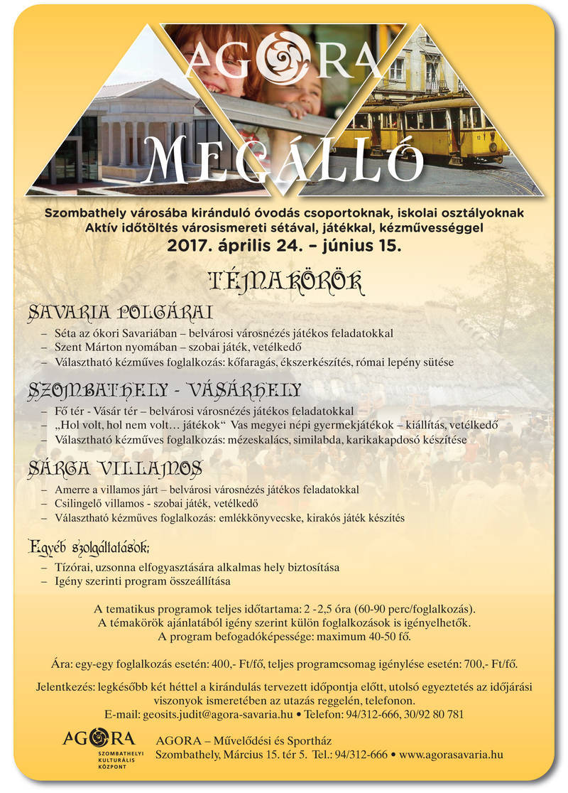 Információ, jelentkezés: 94/312-666 (113. mellék) ● 30/928-0781●www.agorasavaria.hu