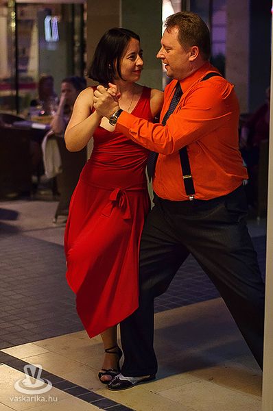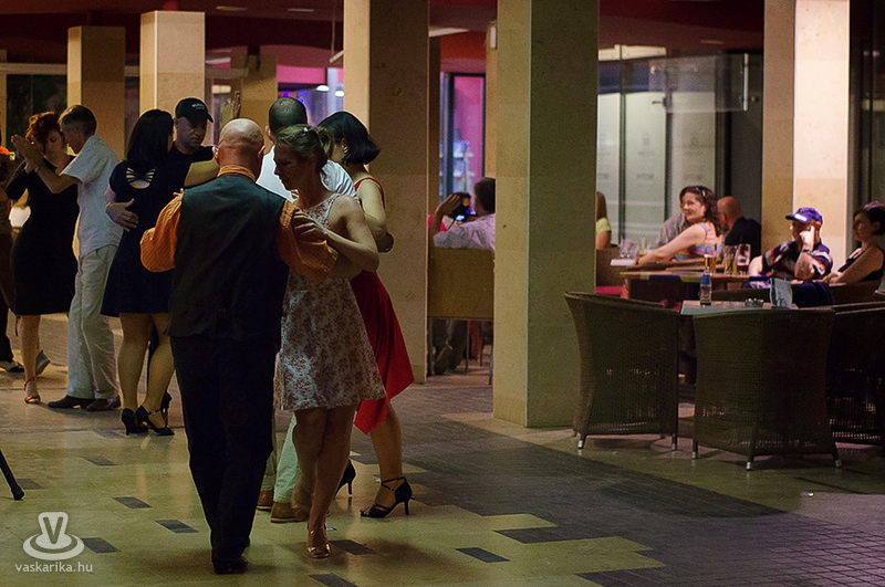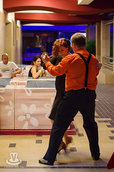 Péntek este milongát, azaz tangó táncházat rendeztek a Cinema Café teraszán, ahol minden tanítvány megmutathatta, mit tanult az elmúlt időszakban, és a kötetlen esten a vendégek is élvezhették a tangó zenéjét. Harmonikán közreműködött Peltzer Géza.