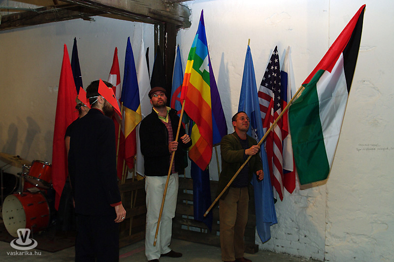 Körbejárhatunk egy kiállítást szép csendben, magunkban, mely után valamiféle jól eső érzéssel térhetünk nyugovóra, hogy most valami értékeset csináltunk. De elmehetünk egy olyan kiállításra is, melynek csöndjét fúvósok törik meg, s megnyitó közepén beállít két álarcos színész, és egy rövid performance keretében zászlókat cserélgetnek.