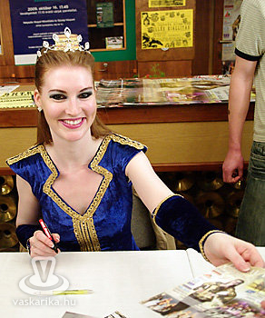 Zárásként az aulában dedikálta az előadással kapcsolatban megjelent anyagait Catherine Gallagher. Amennyire elbűvölő és magávalragadó volt pár perccel ezelőtt a színpadon, legalább annyira közvetlen és megnyerő a „civil térben". Mindenféle allűr nélkül, mosolyogva adta rajongói tudtára: itt bizony ő az est királynője, és nemcsak a hajába tűzött korona miatt. A személyisége miatt is.