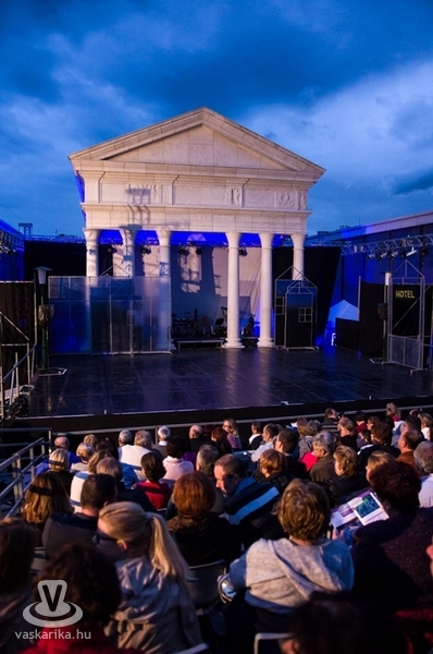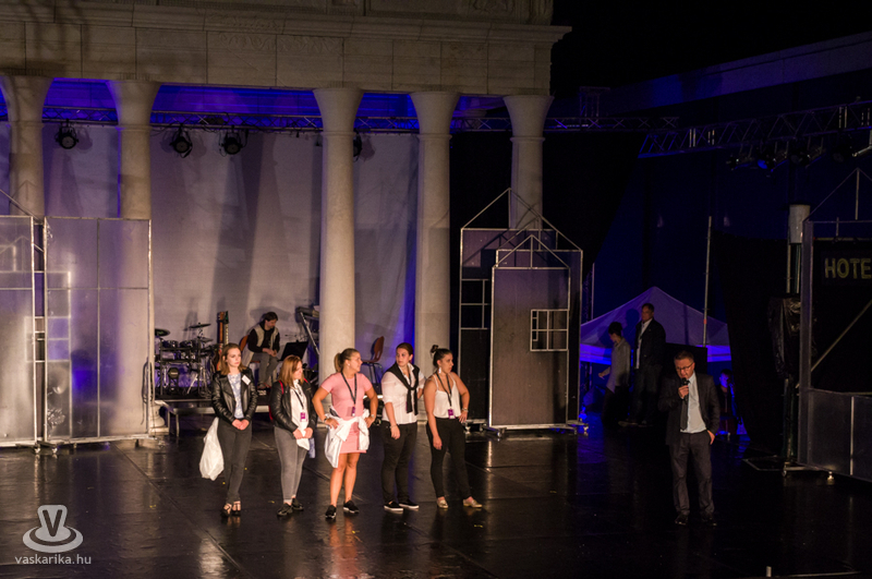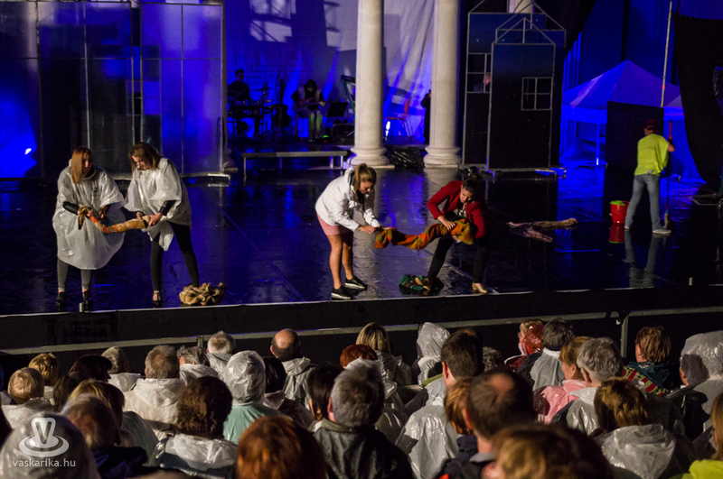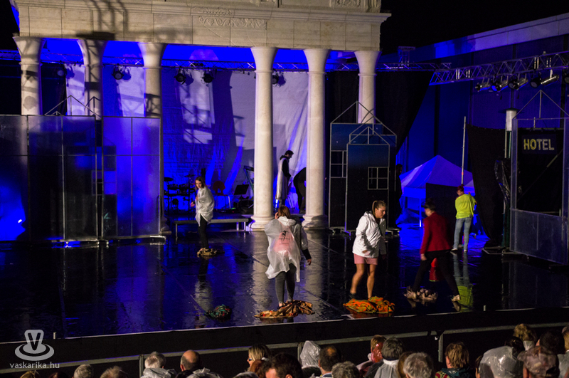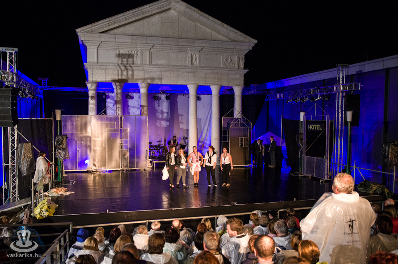 Musicalre jöttünk, komédia lett belőle. Legalábbis az előadás kezdetére eleredő eső miatti színpadtakarítás fél órájára. Nem akarunk lándzsát törni senki felett, hiszen a szabadtéri programok legnagyobb rendezője az időjárás, ami sokszor kiveszi a pálcát a karmester vagy a rendező kezéből, és akkor int be, amikor nem kellene. Ahogy tette azt szerda este is. Pedig az Iseumi Játékok legjobban várt előadására minden jegy elkelt, a szervezők pótszékeket is tettek be, és a figyelmességük arra is kiterjedt, hogy praktikus, zsebben elférő esőkabátokat adjanak a nézőknek. ExperiDance-es reklámajándék, rajta a "Ha esik, ha fúj" felirattal...